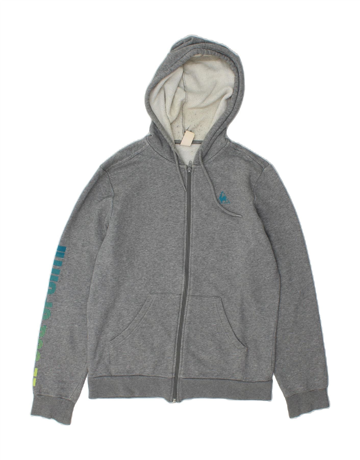 LE COQ SPORTIF Mens Graphic Zip Hoodie Sweater Small Grey Cotton