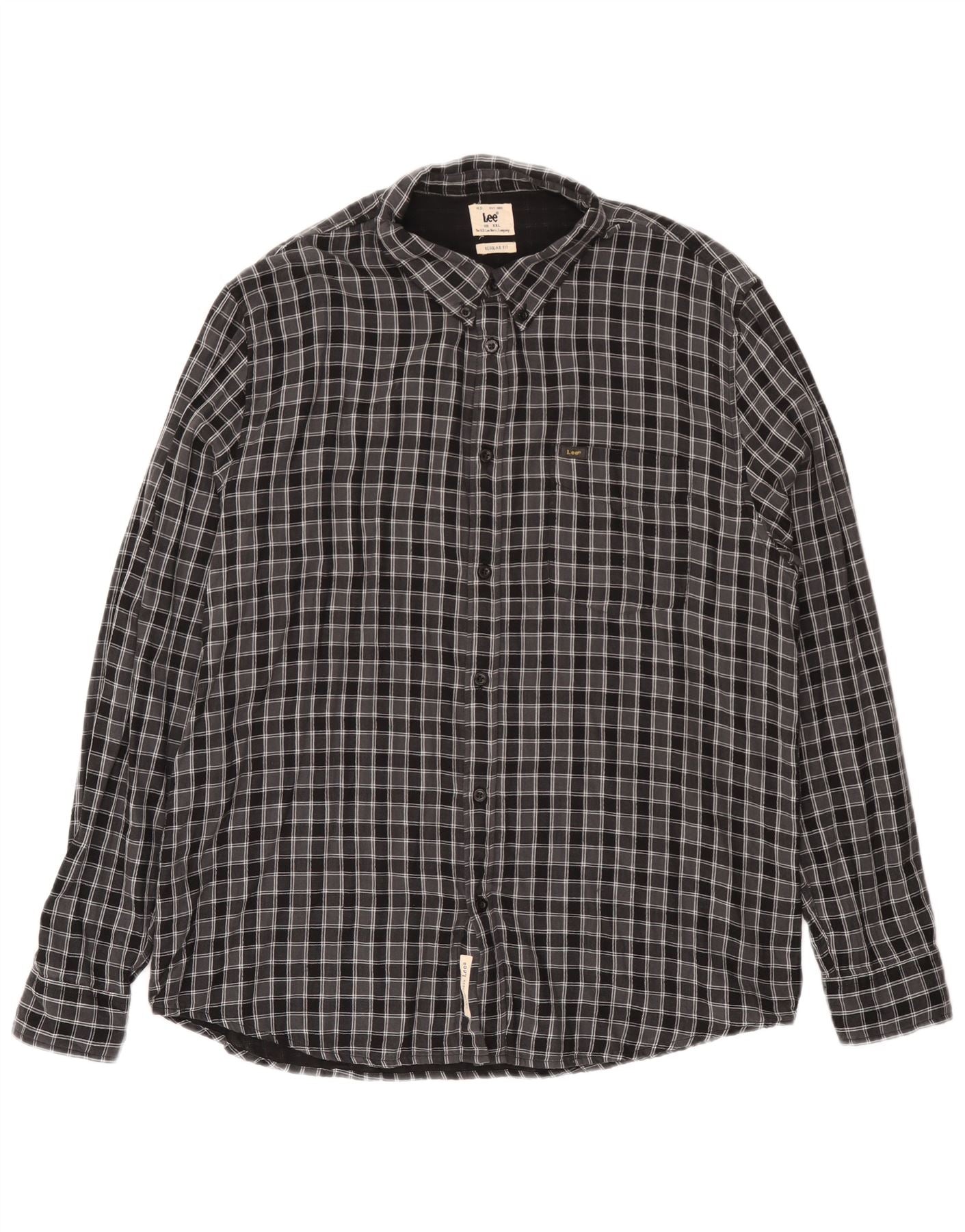 Camisa de franela de corte regular para hombre Lee 2XL Algodón a cuadros negros