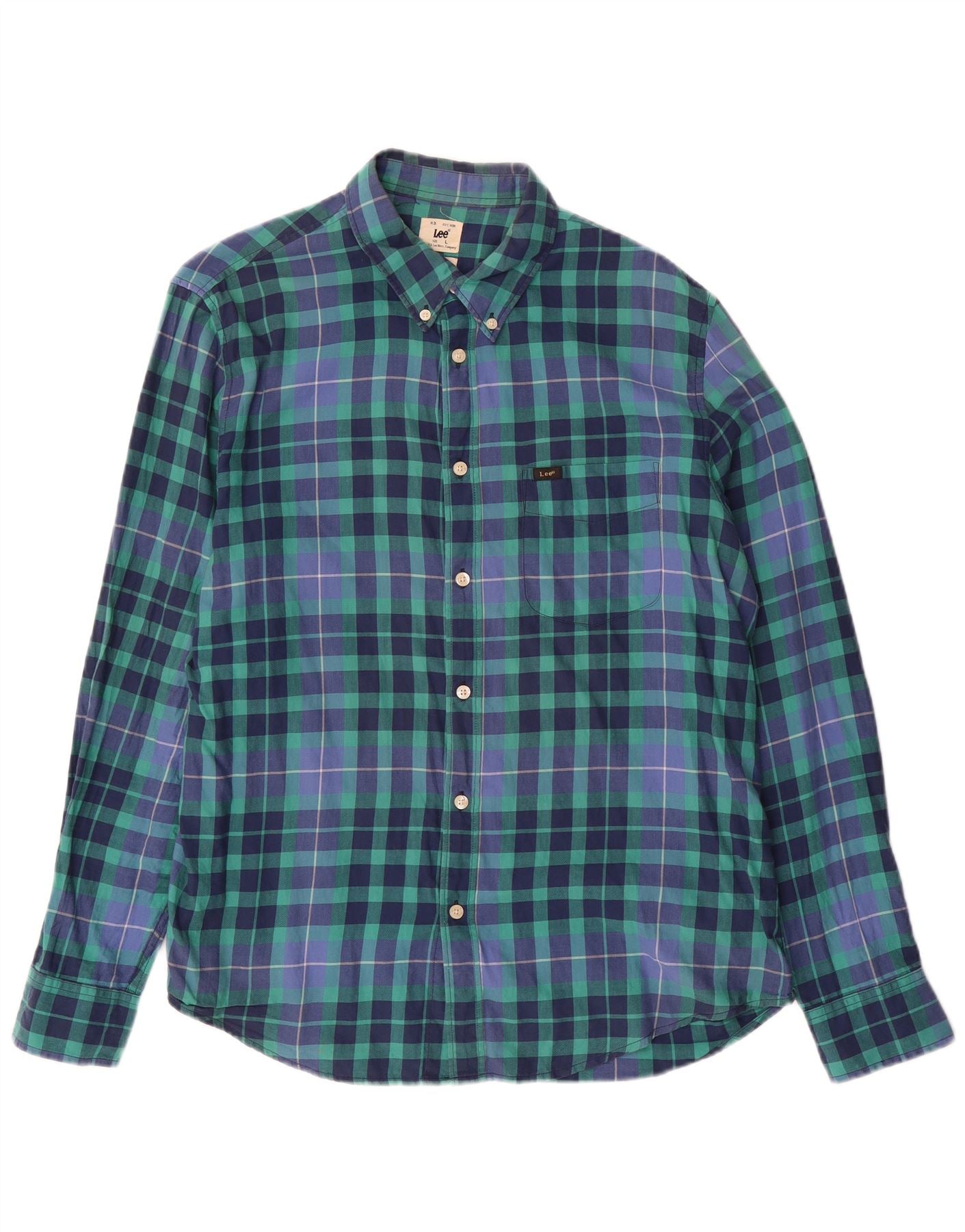LEE Camisa de corte regular para hombre de algodón a cuadros azules grandes