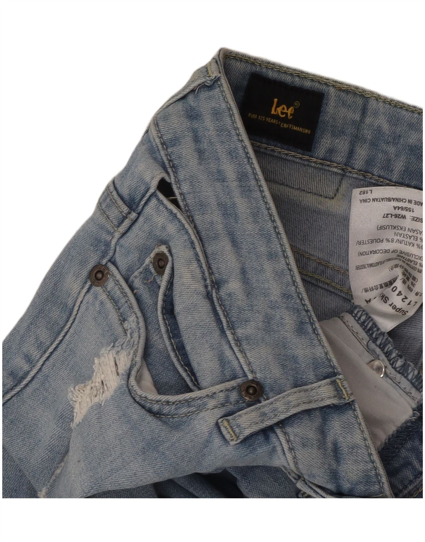 LEE Vaqueros súper ajustados desgastados para mujer W26 L27 Algodón azul