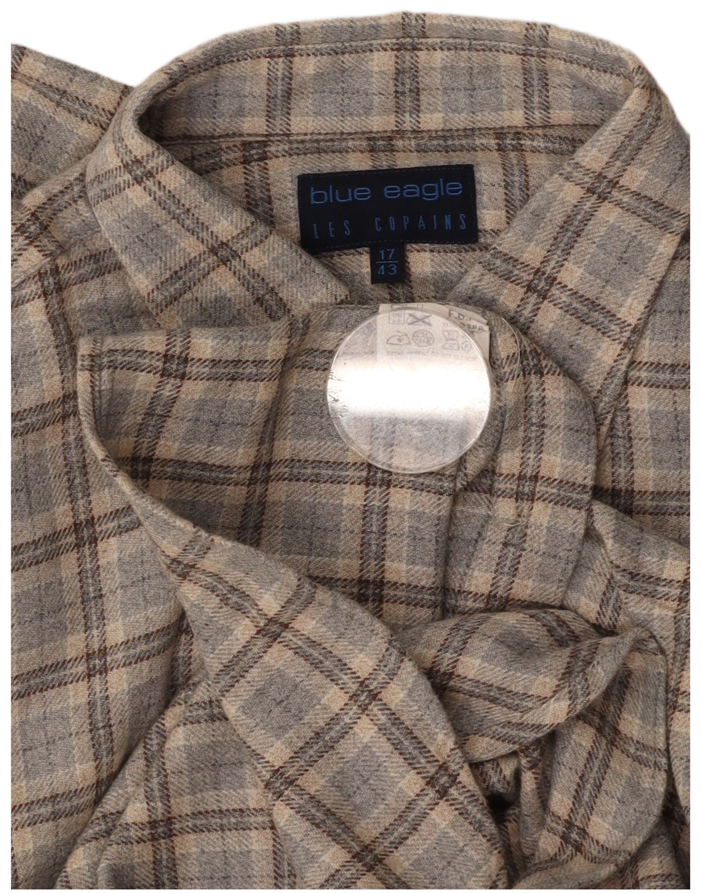 LES COPAINS Camisa de franela para hombre Talla 17 43 XL Algodón a cuadros gris