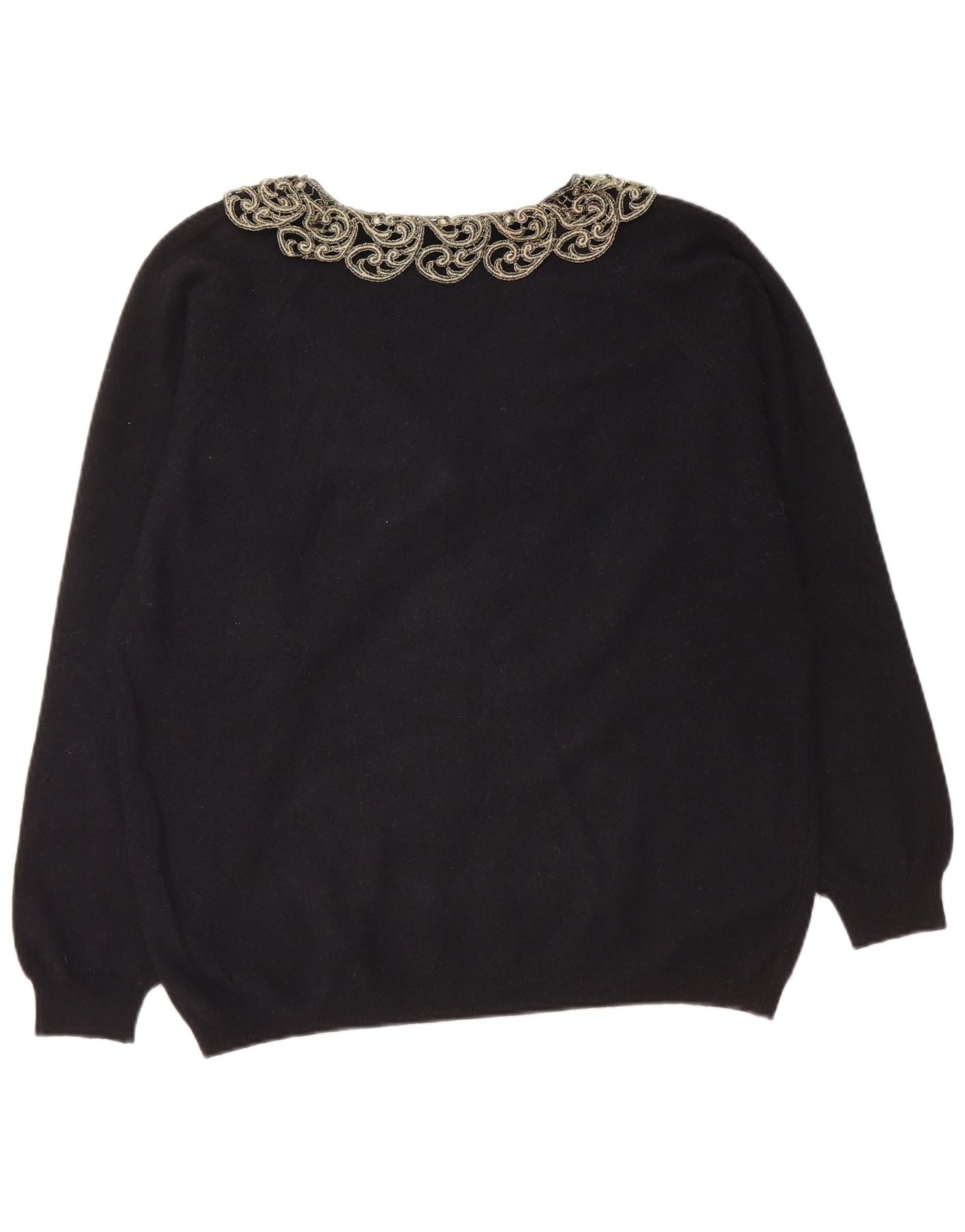 LETIZIA L. Suéter tipo jersey con cuello en V para mujer UK 46 Large Black Paisley Wool