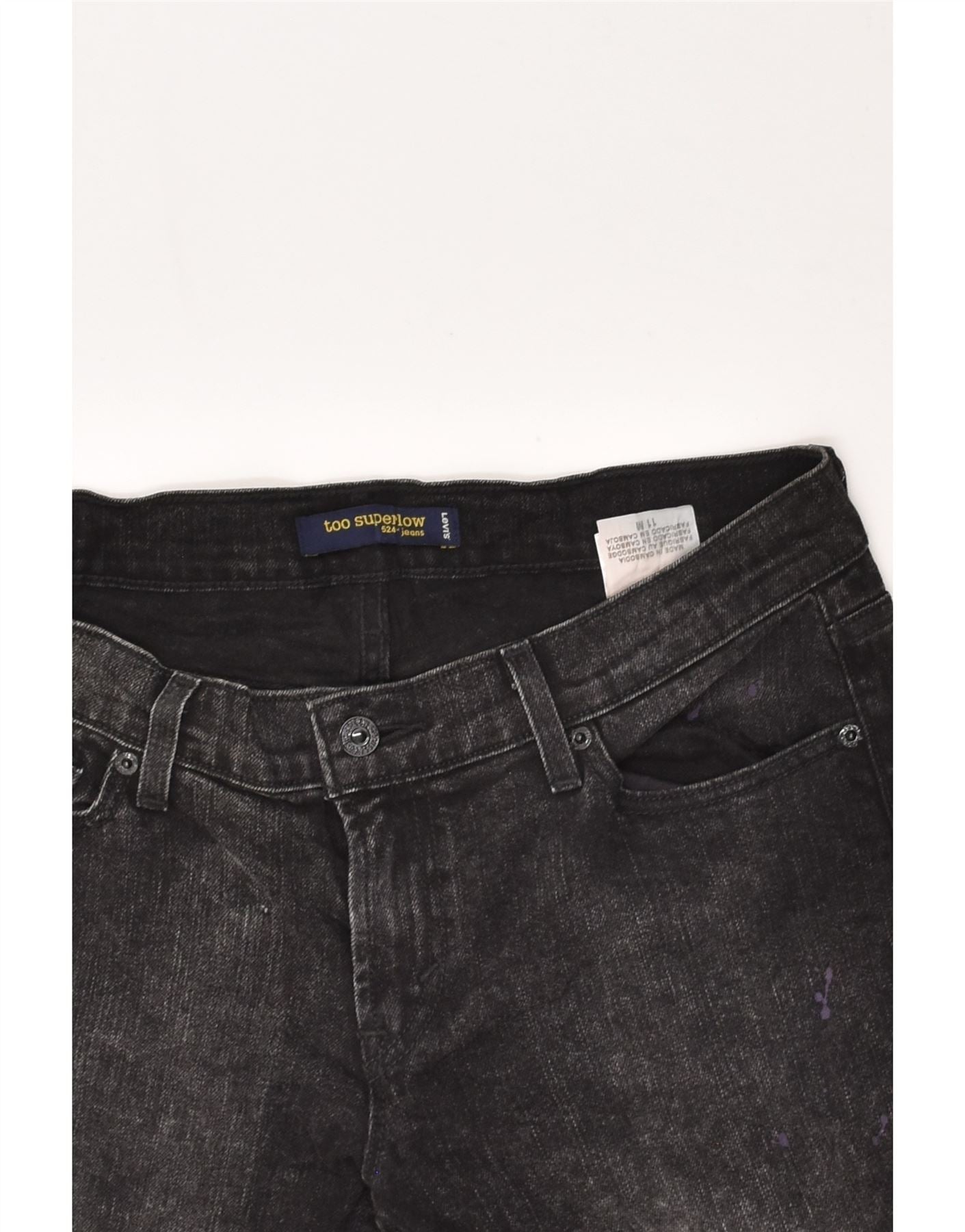 LEVI'S Jeans 524 Super Low Slim para mujer UK 11 Large W34 L33 Algodón negro