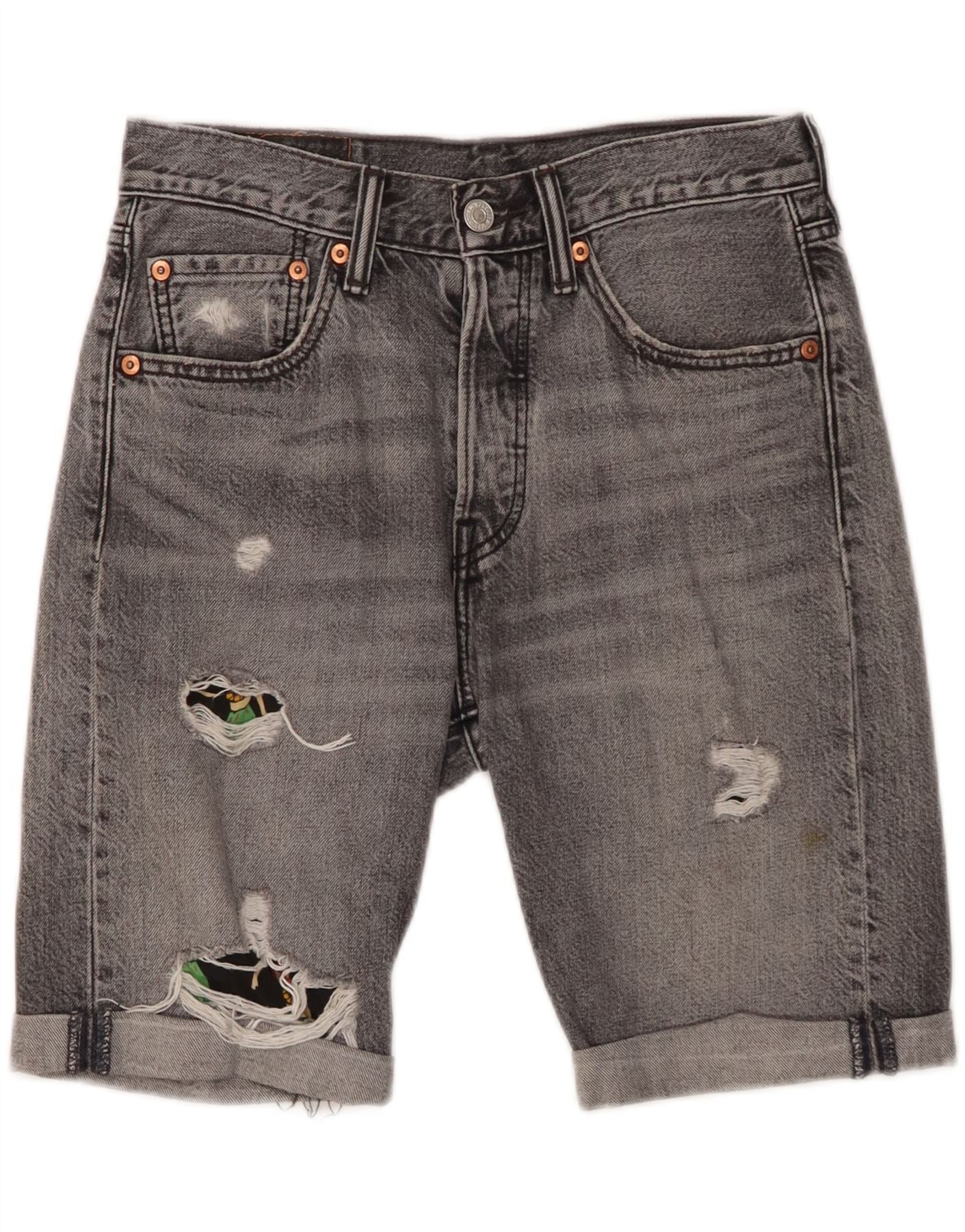LEVI'S Mens 501 pantalones cortos de mezclilla desgastados W28 pequeño algodón gris