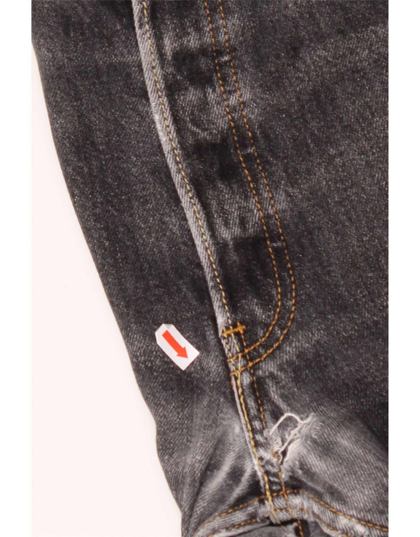 • Condición: Mal estado de uso: el artículo se ha usado con frecuencia y muestra fallas/defectos importantes - Dobladillos desgastados. Agujero en la zona de la entrepierna. Bolsillos desgastados. Material desgastado.