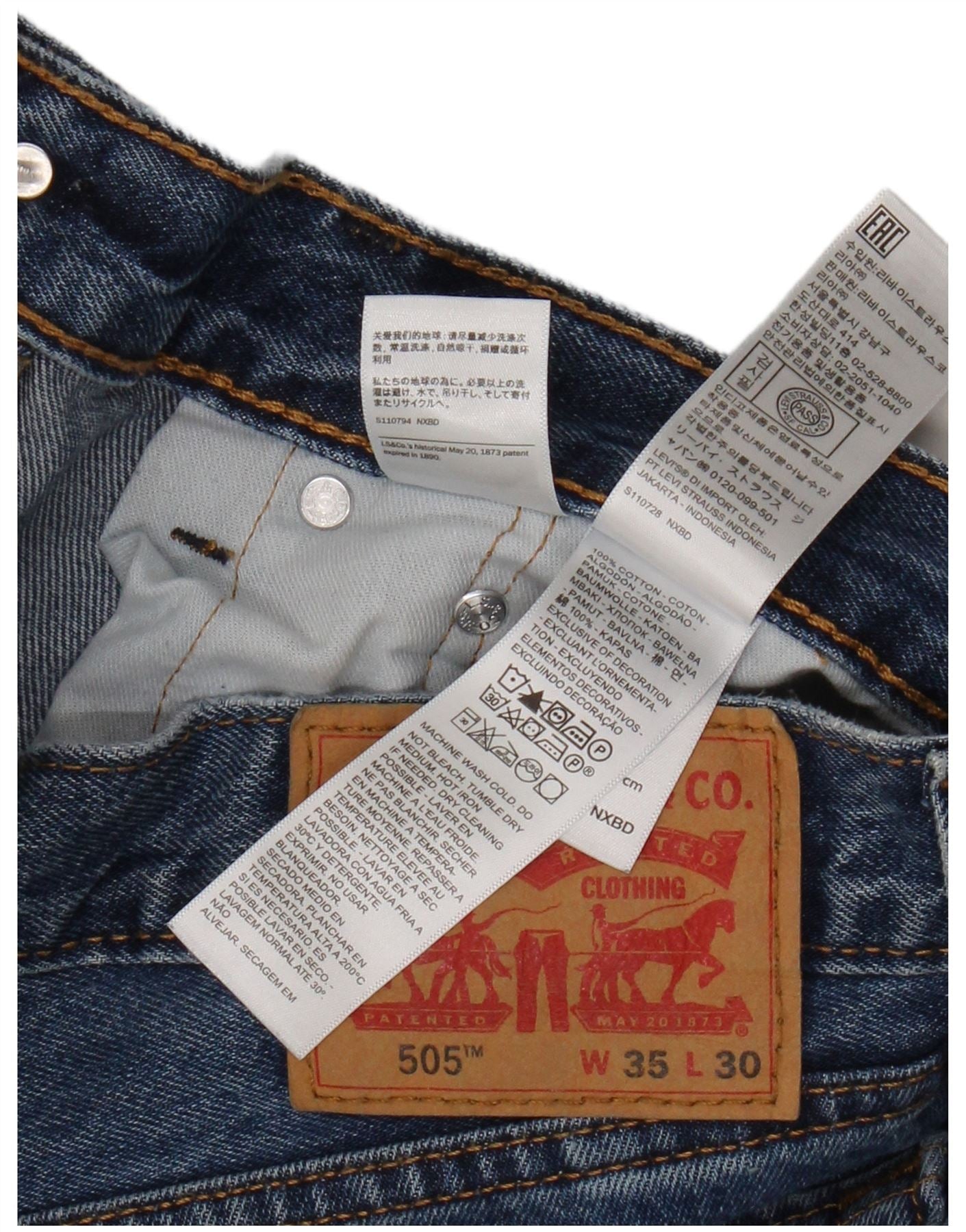 Levi's Hombre 505 Vaqueros Rectos W35 L30 Algodón Azul
