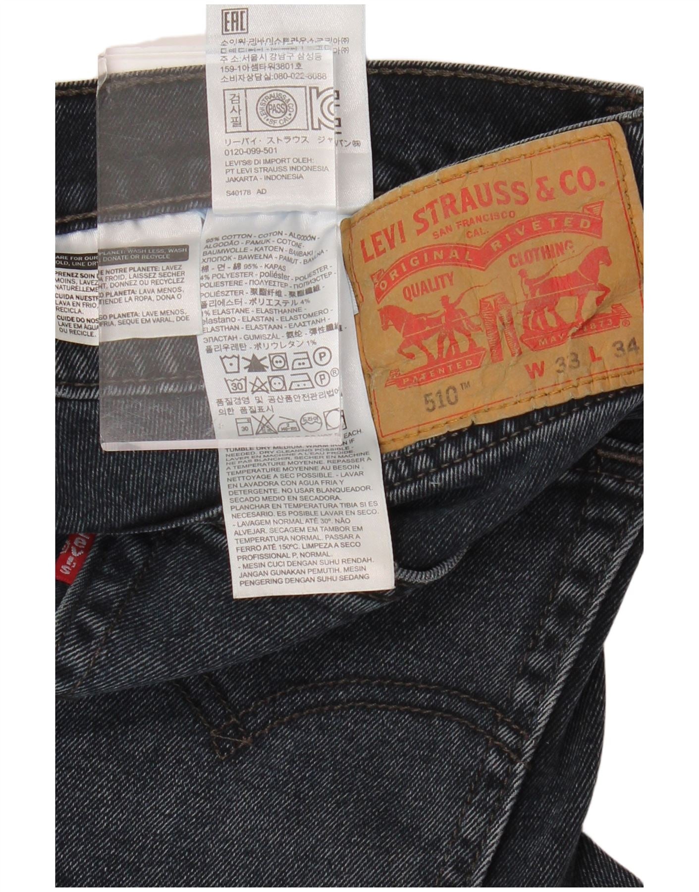 LEVI'S Vaqueros pitillo 510 para hombre W33 L34 Algodón azul marino