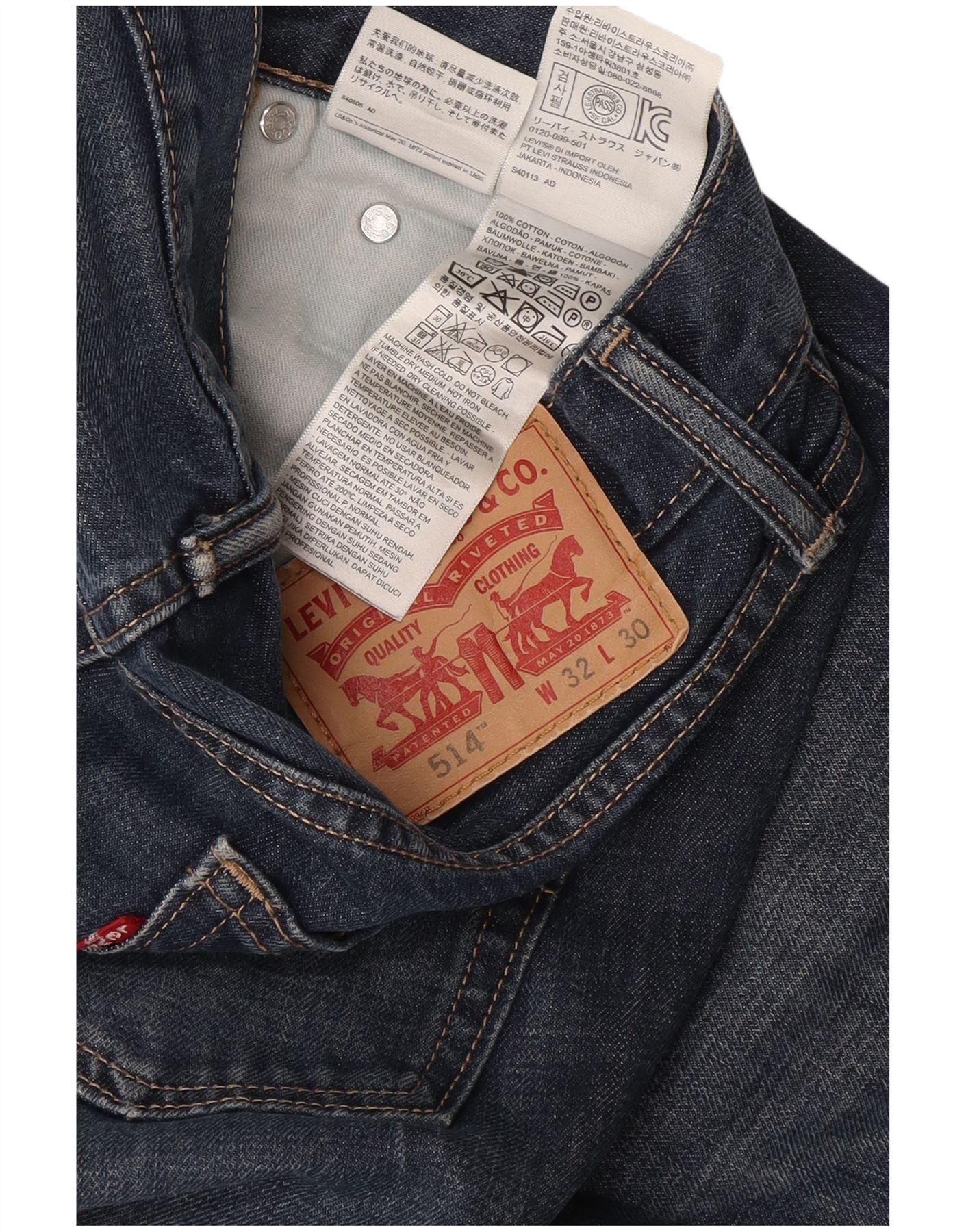 Levi's Hombre 514 Vaqueros Rectos W32 L30 Algodón Azul Marino
