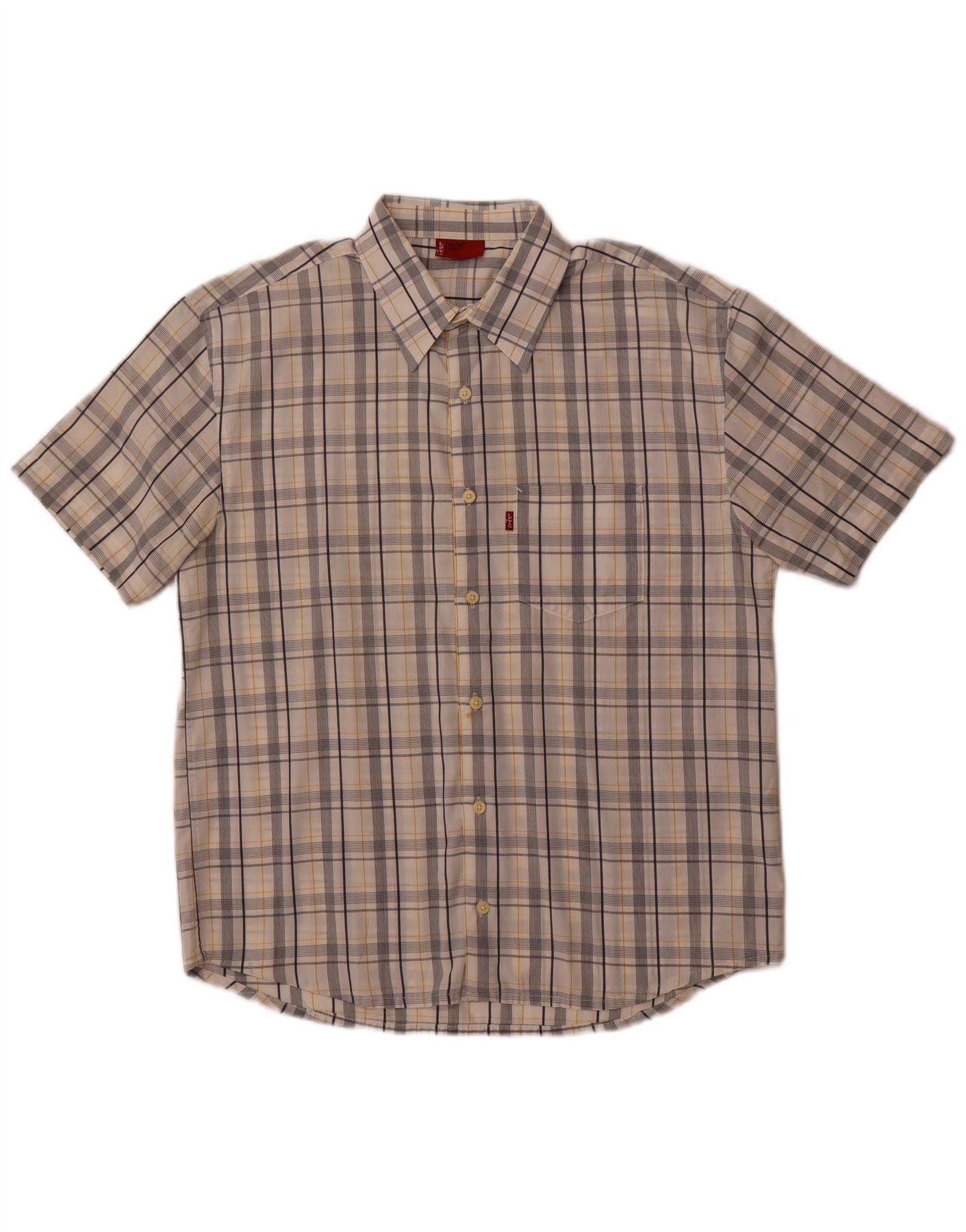 LEVI'S Camisa de manga corta para hombre de algodón a cuadros blancos grandes