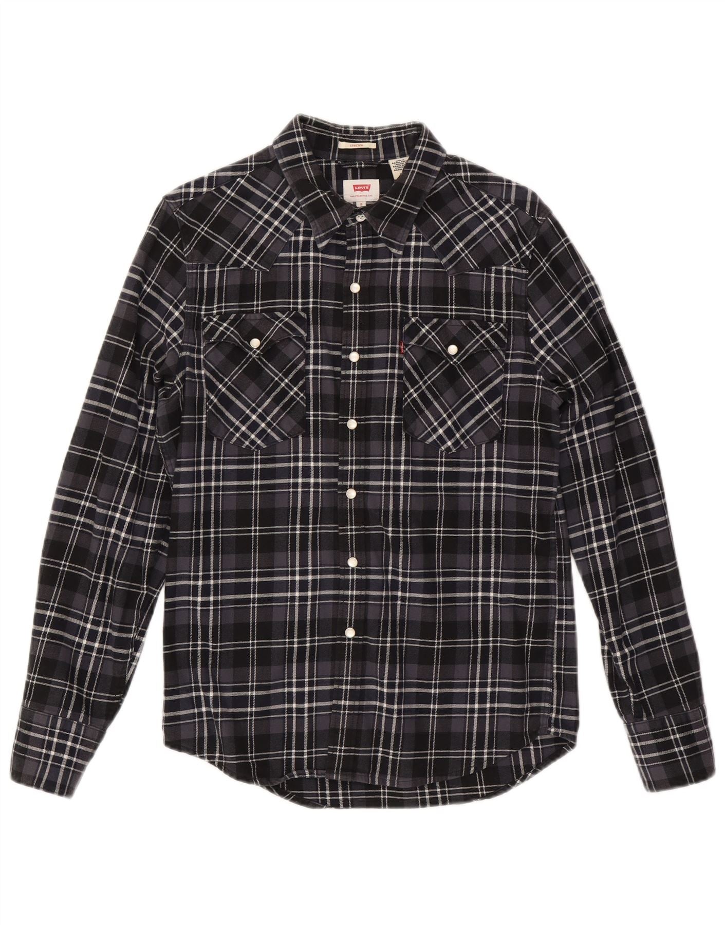 LEVI'S Camisa de franela elástica de algodón a cuadros negros pequeños para hombre