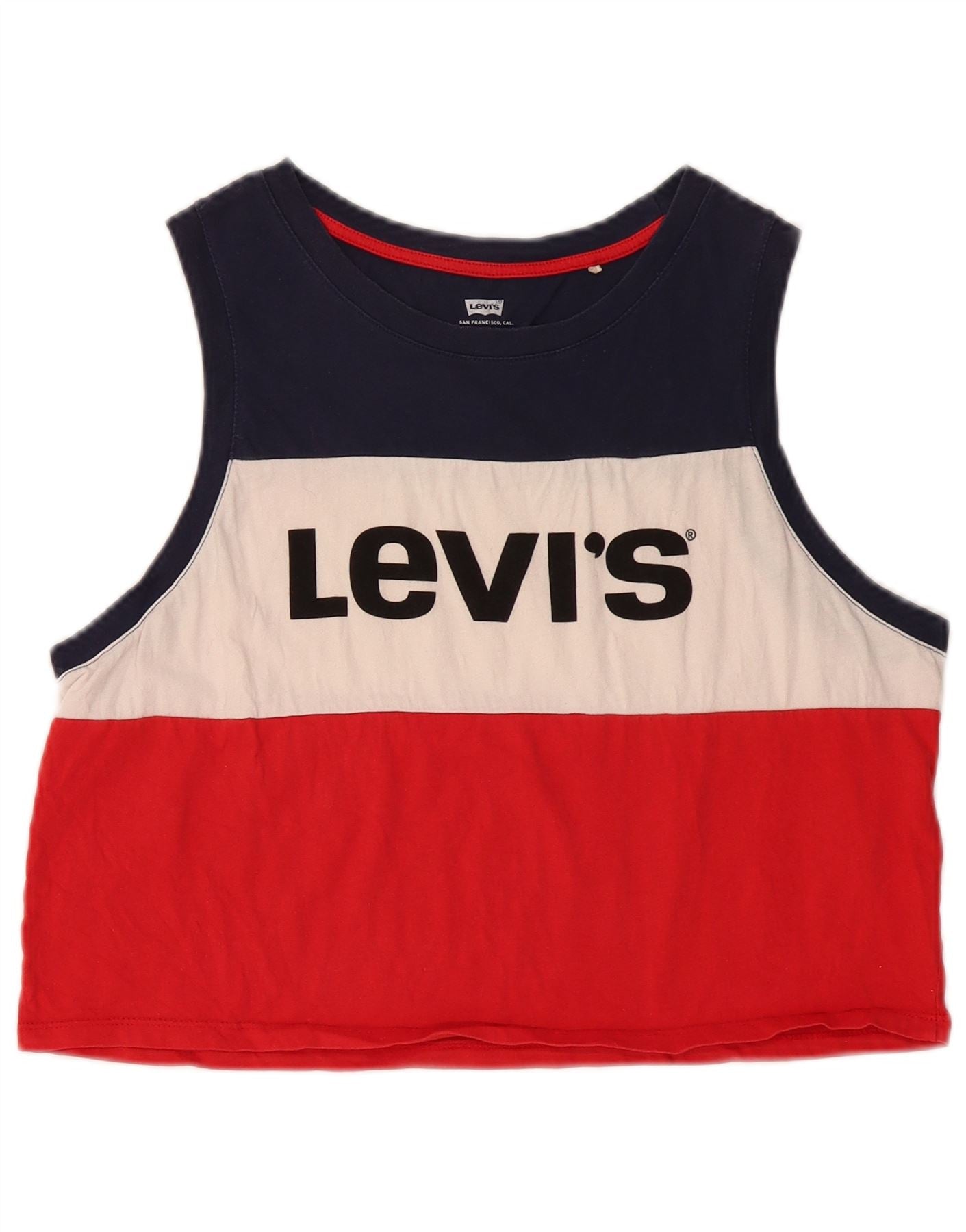 LEVI'S Top sin mangas con gráfico corto para mujer UK 44 Grande Bloque de color multicolor
