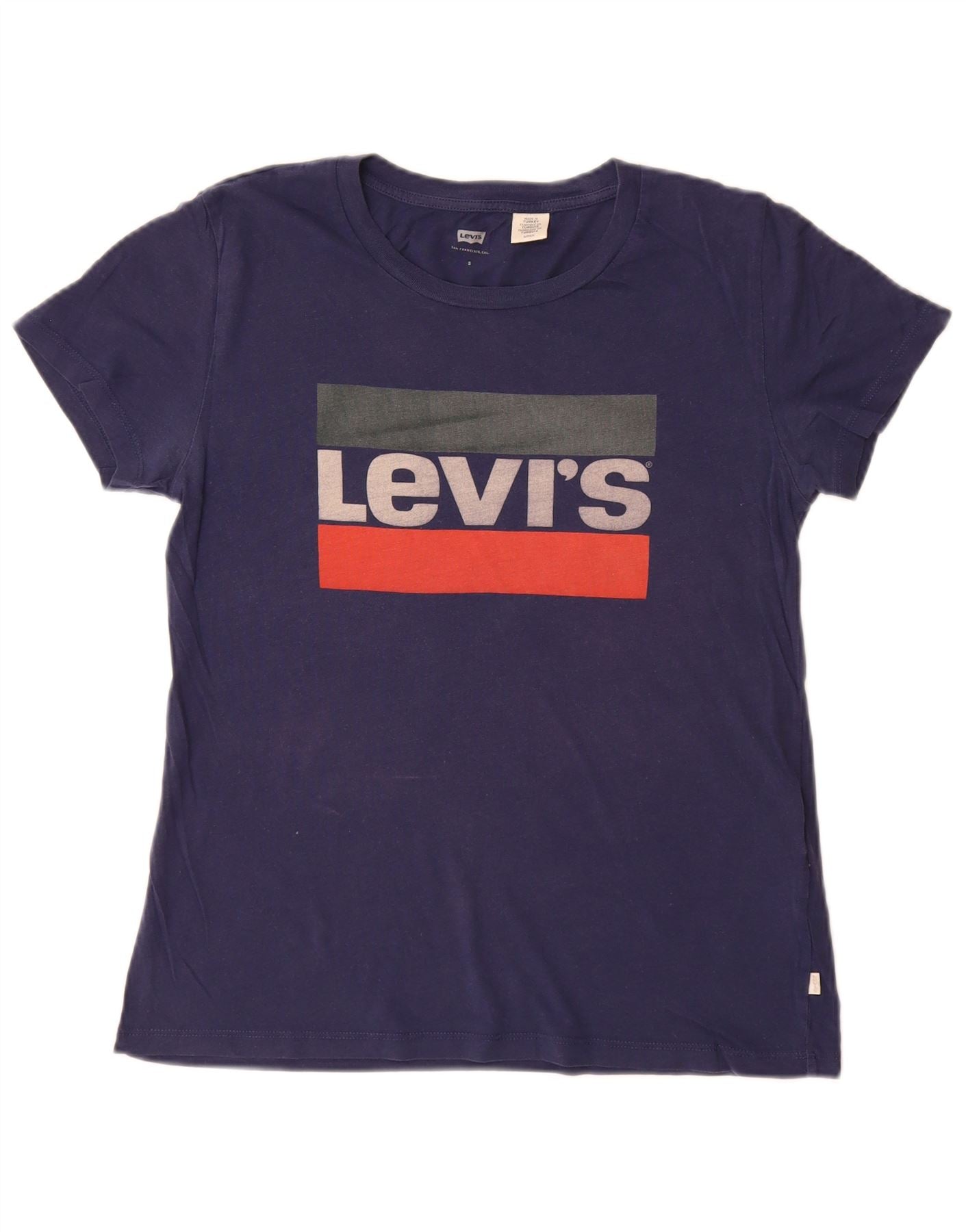LEVI'S Camiseta gráfica para mujer Top UK 10 Small Azul marino Algodón