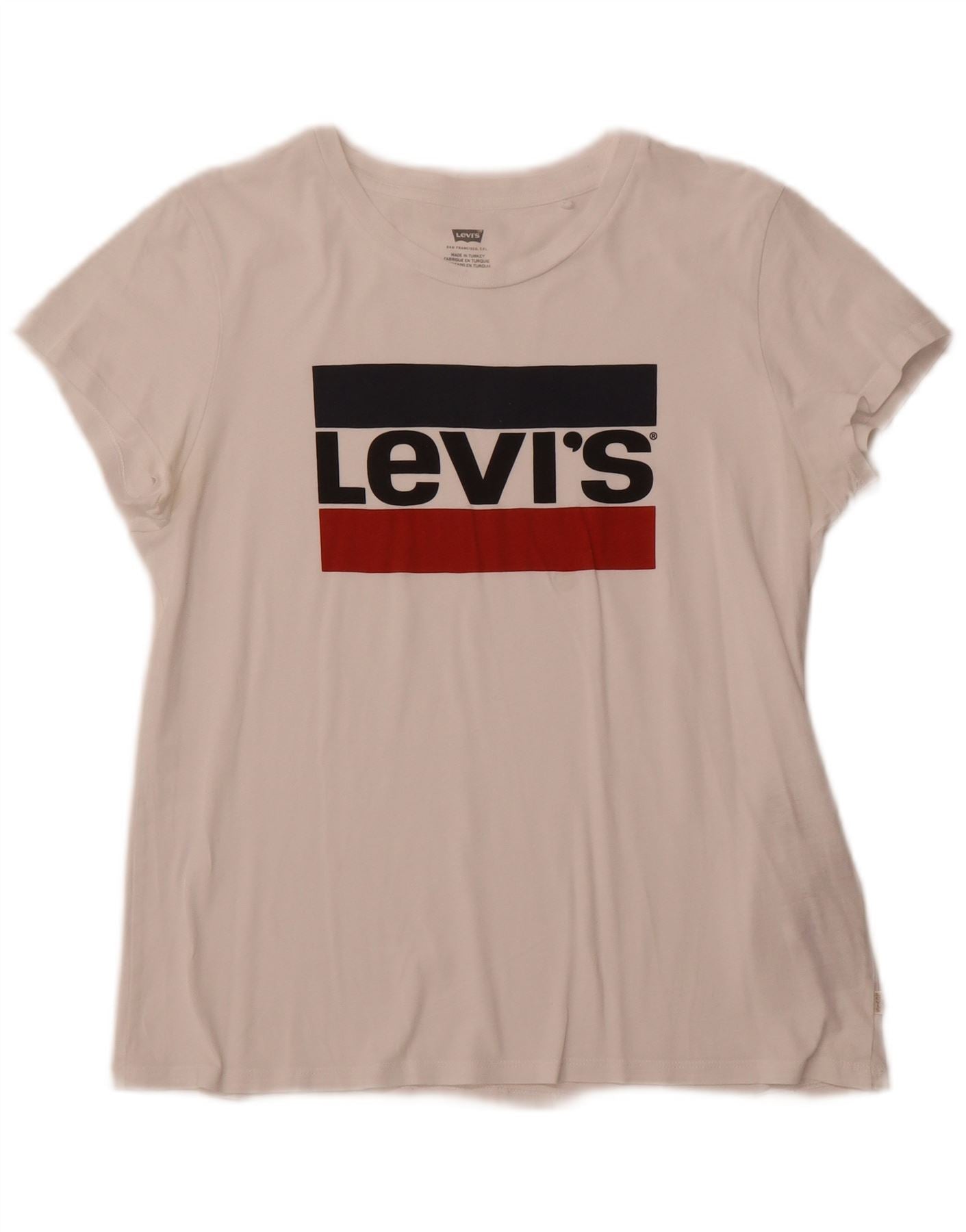 LEVI'S Camiseta gráfica para mujer Top UK 12 Medium White Cotton
