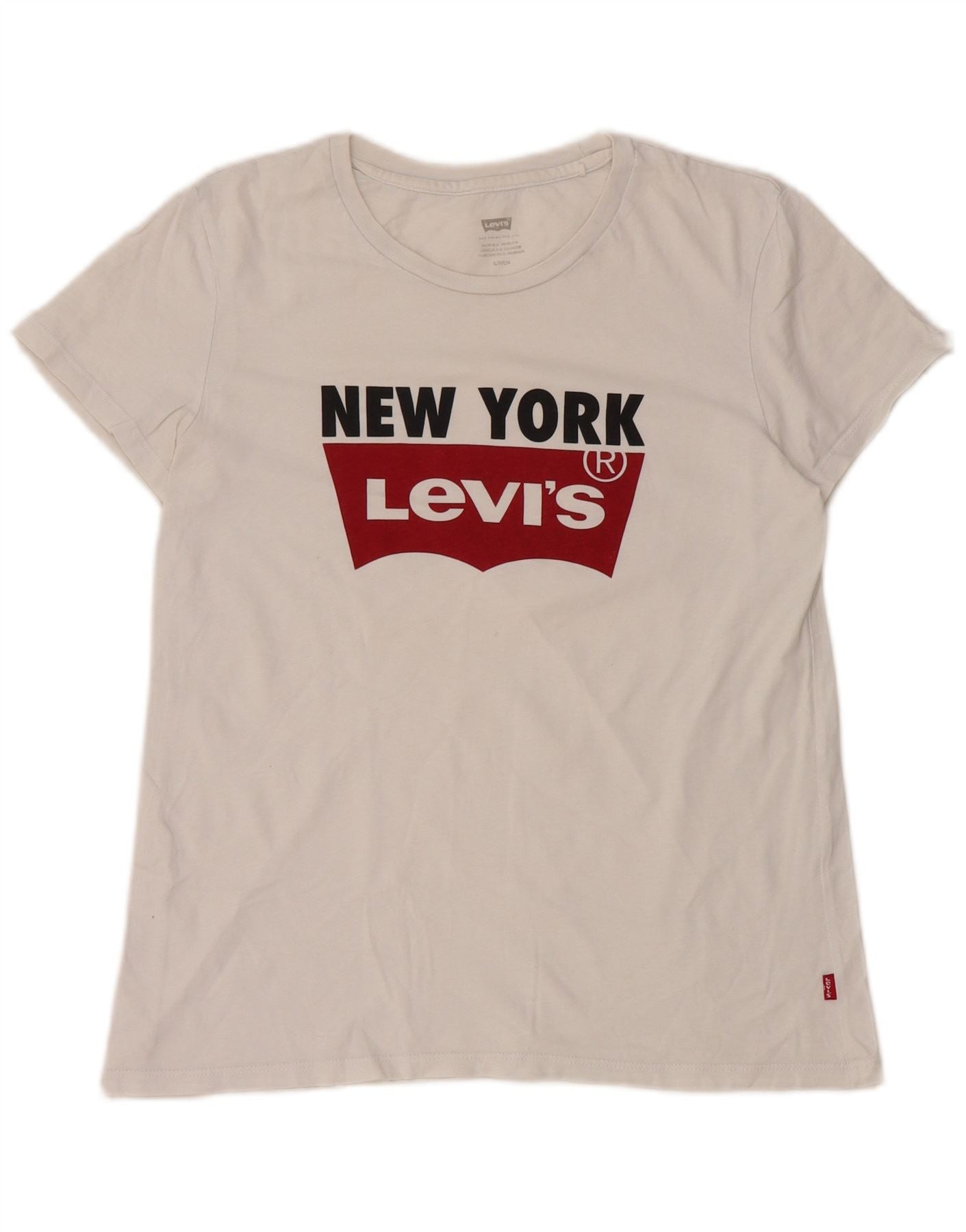 LEVI'S Camiseta gráfica New York para mujer Top UK 10 Small White