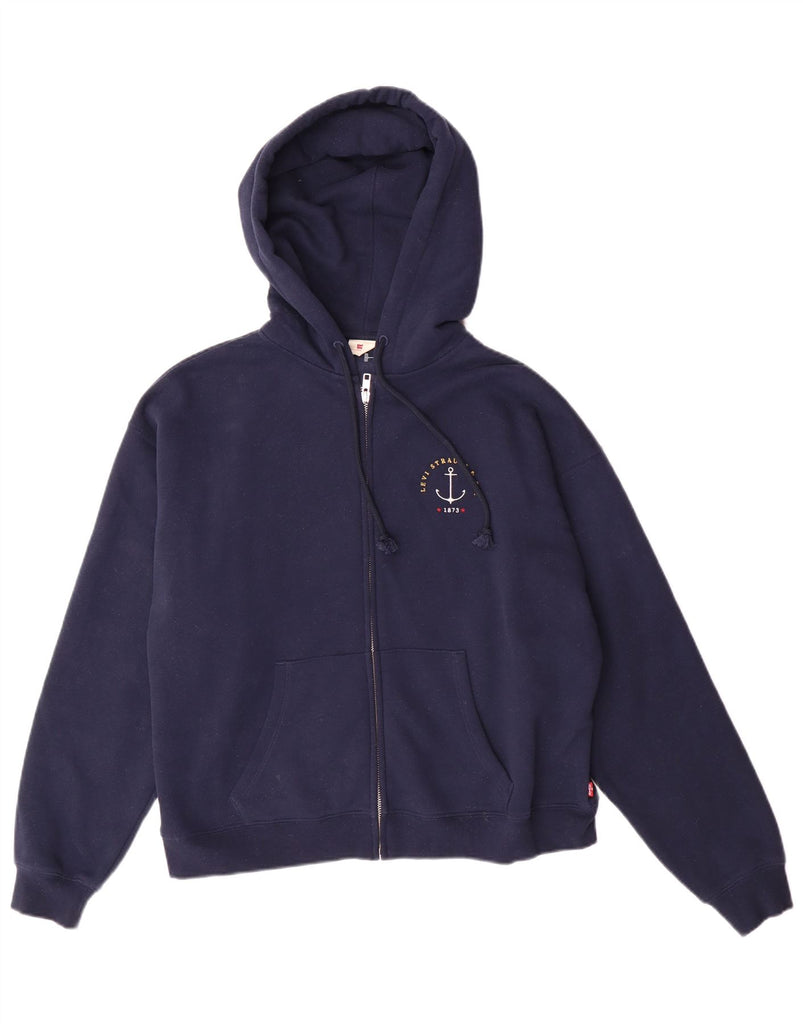 LEVI'S Suéter con capucha y cremallera de gran tamaño para mujer UK 10 Small Azul marino
