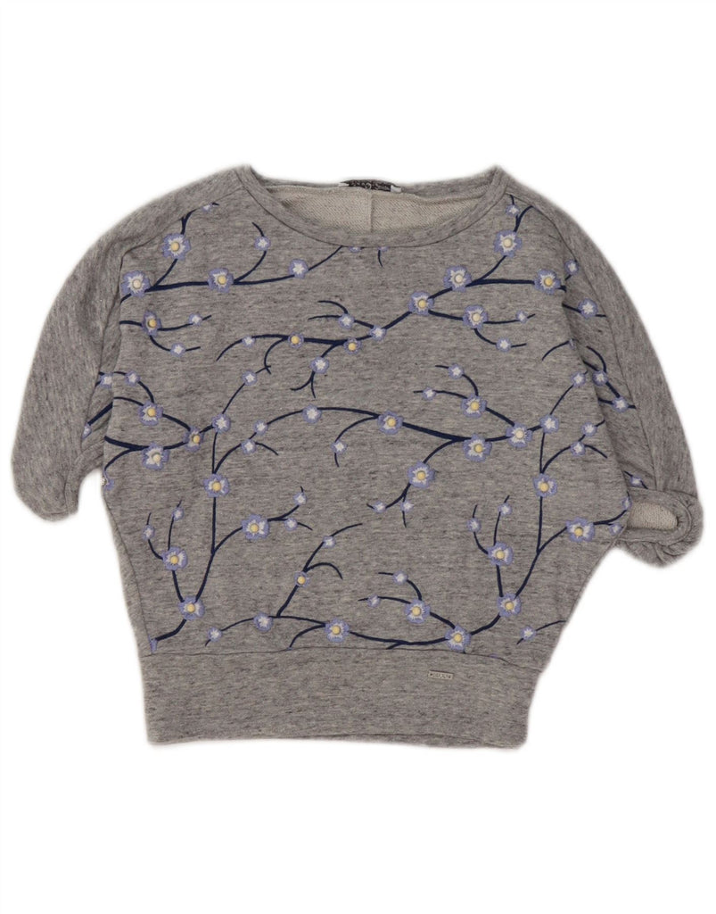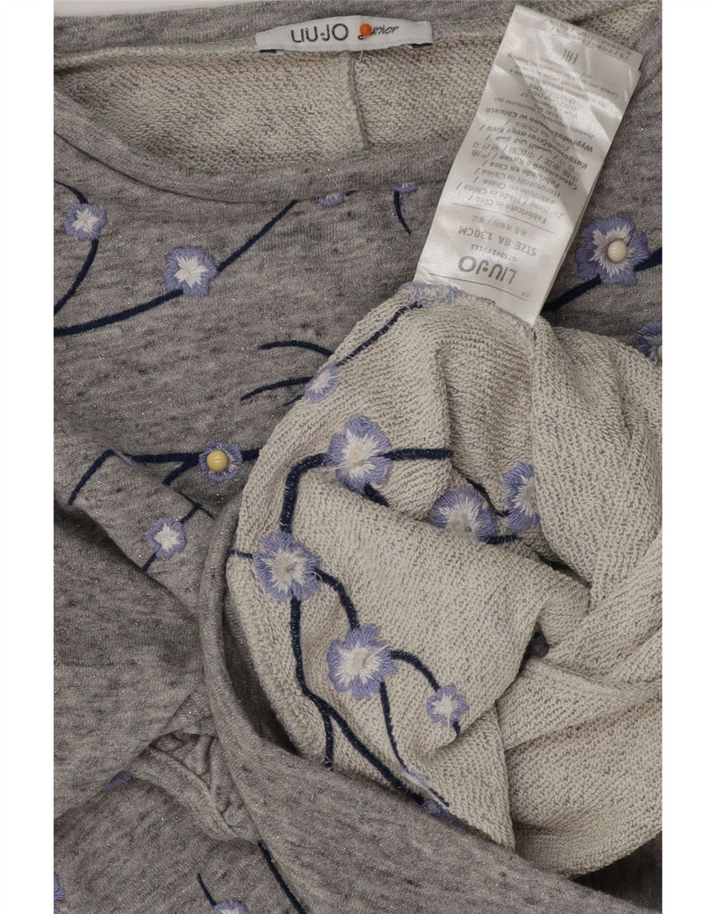 LIU JO Girls 3/4 Sleeve Sweatshirt Jumper 7-8 Years Grey Floral Cotton