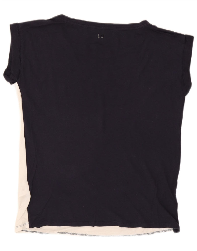 LIU JO Womens Graphic T-Shirt Top UK 14 Medium Navy Blue Geometric Cotton