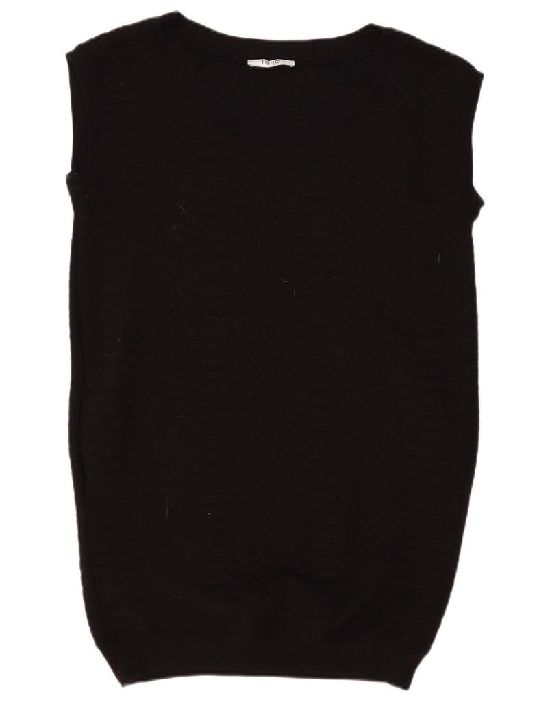 LIU JO Womens Oversized Longline Vest Tank Top UK 10 Small Black Polyester