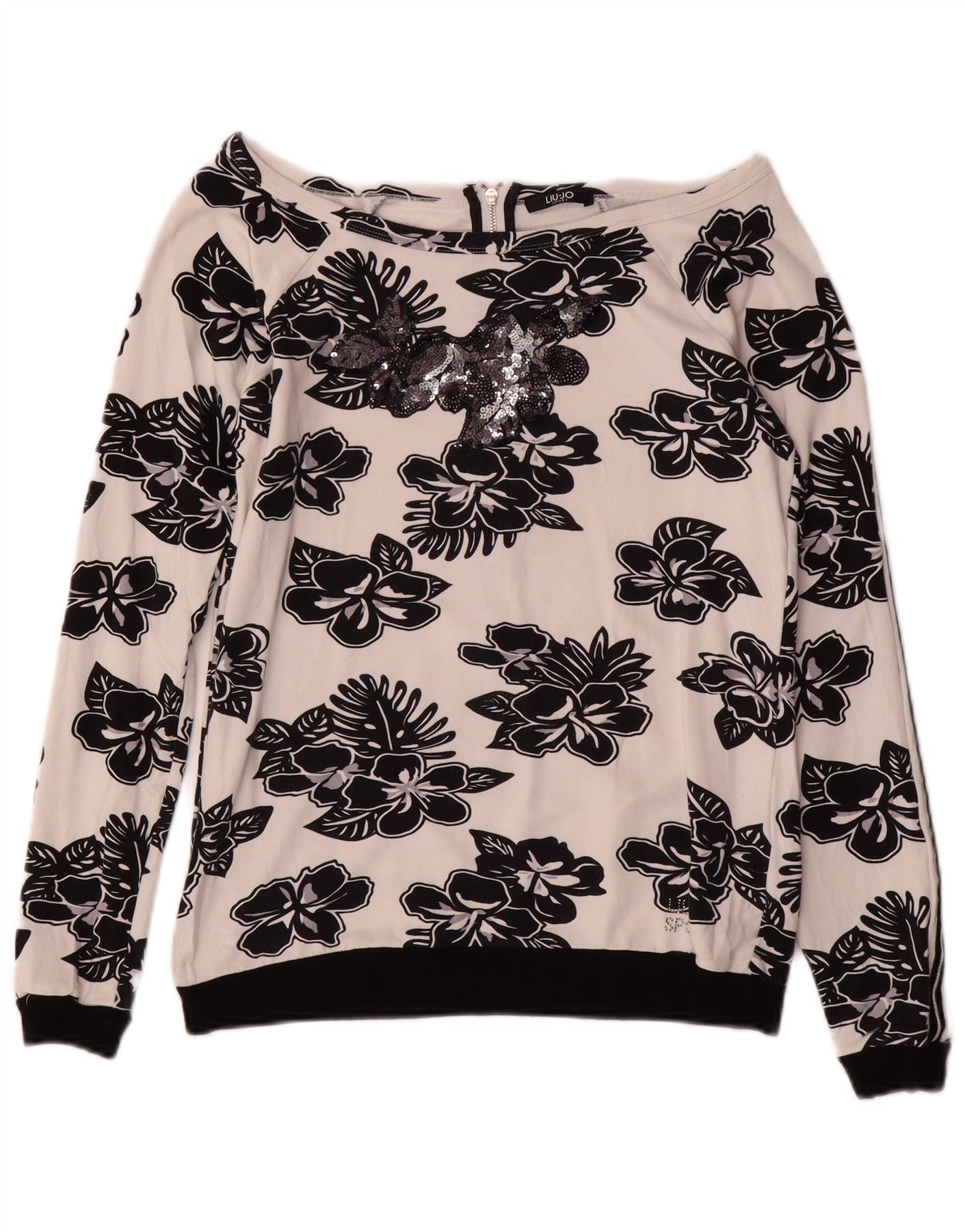 LIU JO Sudadera para mujer Jumper UK 10 Small White Floral Viscosa