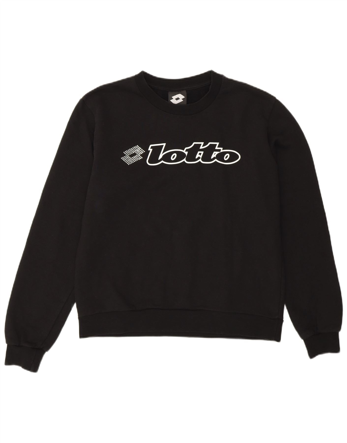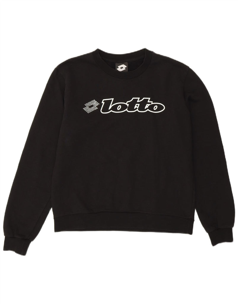 LOTTO Womens Oversized Graphic Sweatshirt Jumper UK 10 Small Black Cotton