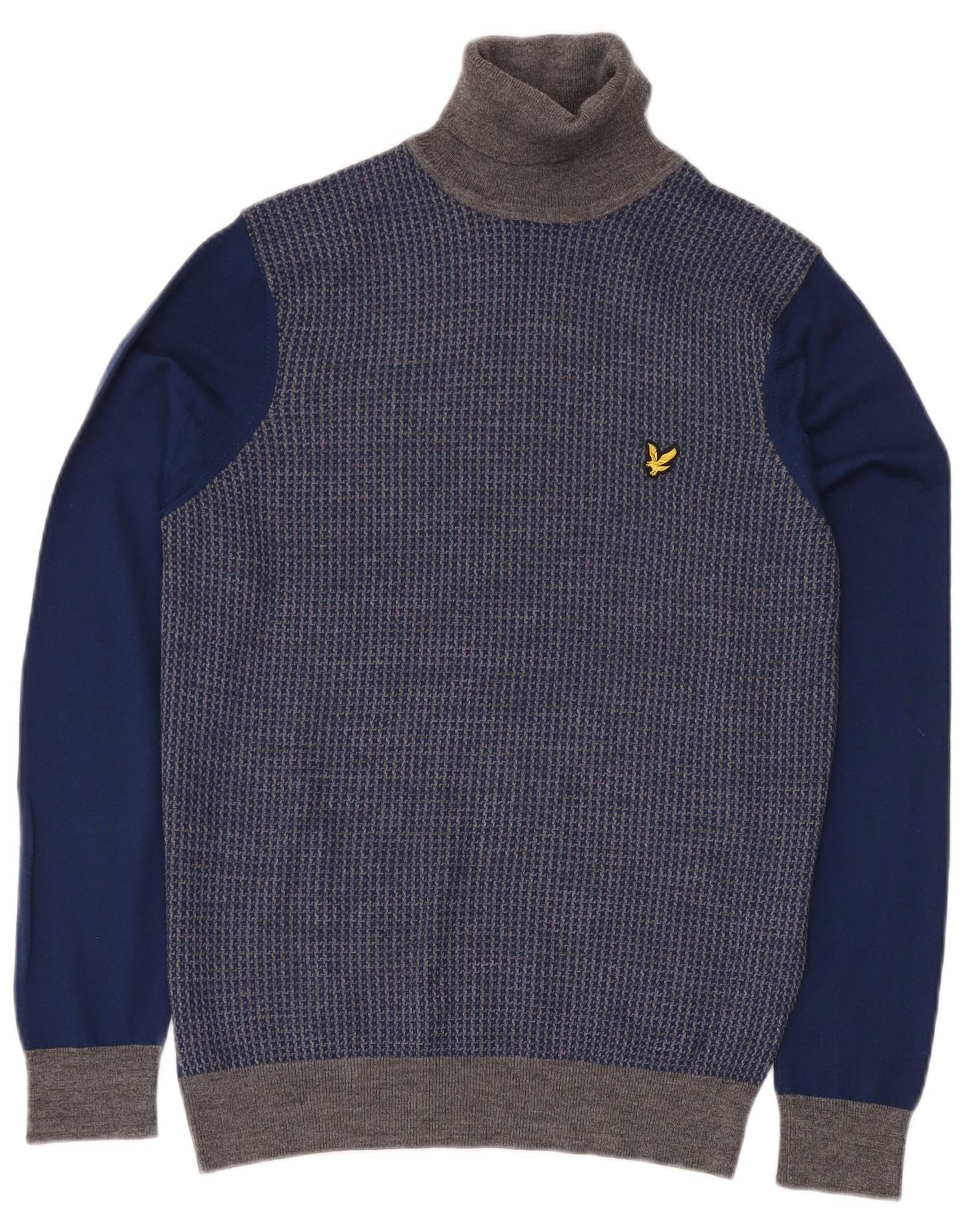 LYLE & SCOTT Jersey con cuello vuelto para hombre de lana virgen a cuadros en azul medio