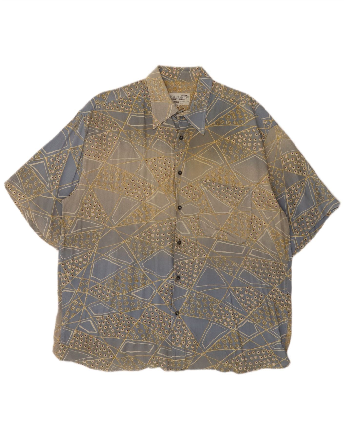 MAC FASHION Camisa de manga corta para hombre grande azul geométrico