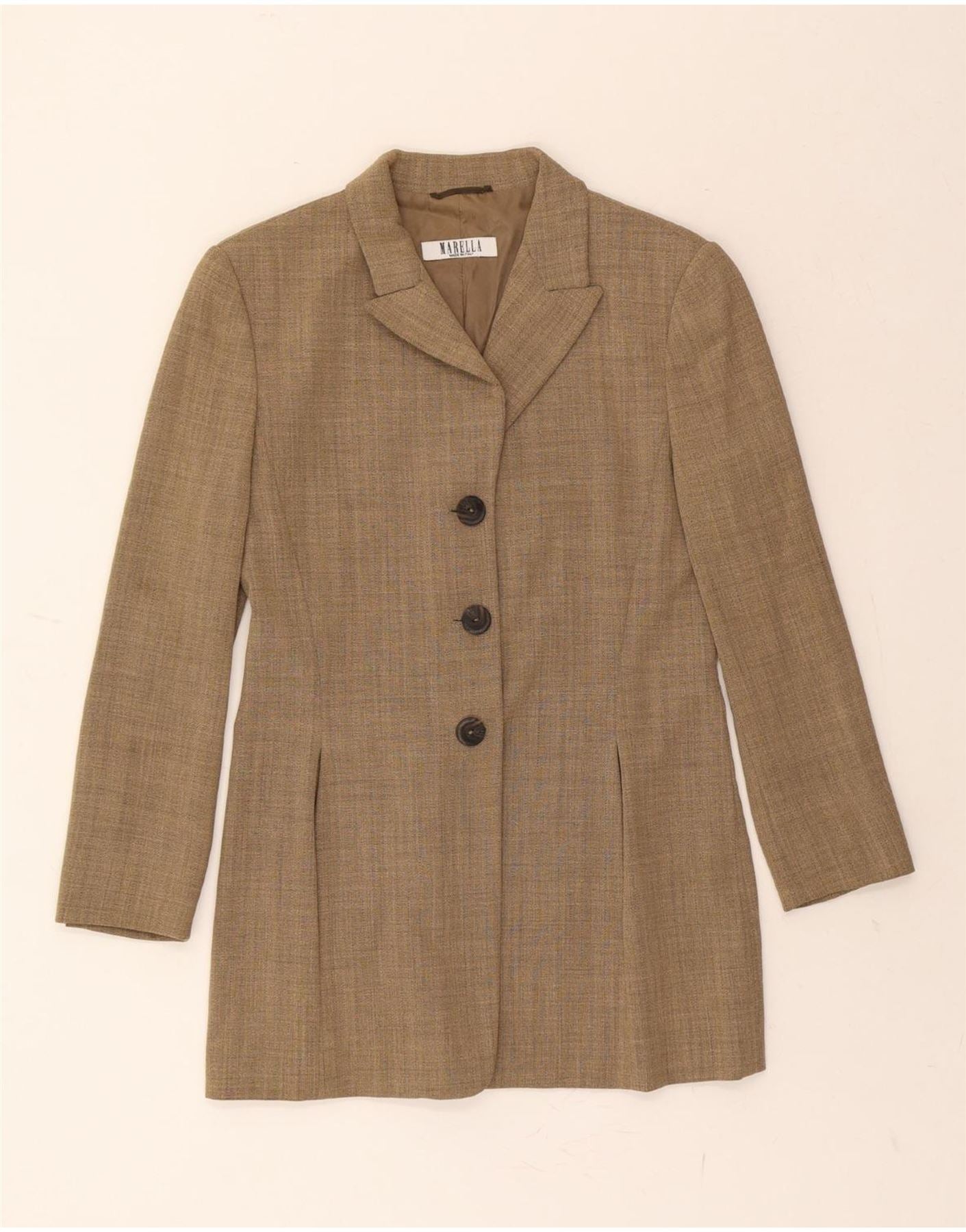 MARELLA Womens Longline 3 Button Blazer Jacket UK 10 Small Beige Wool