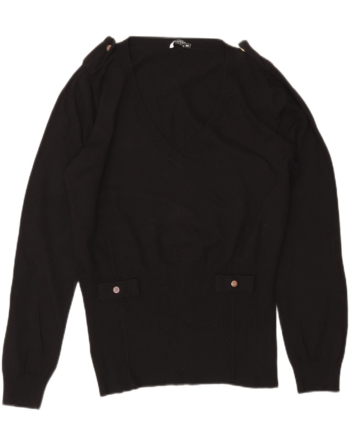 MARELLA Jersey militar con cuello en V para mujer UK 20 2XL Viscosa negra