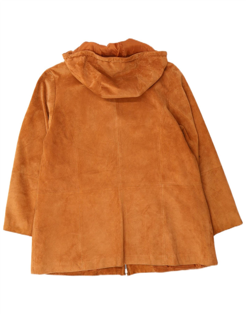 MARINA RINALDI Chaqueta de ante con capucha de gran tamaño para mujer Talla 25 Marrón grande