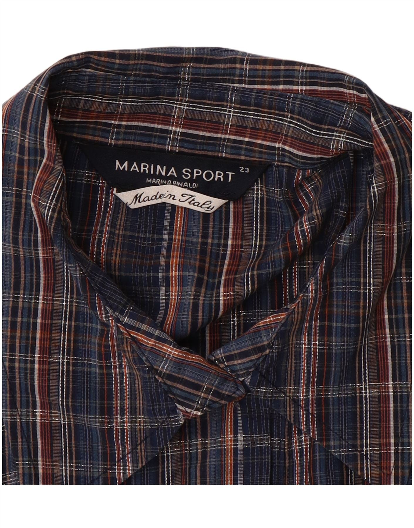MARINA RINALDI Womens Oversized Shirt Size 23 Medium Navy Blue Check