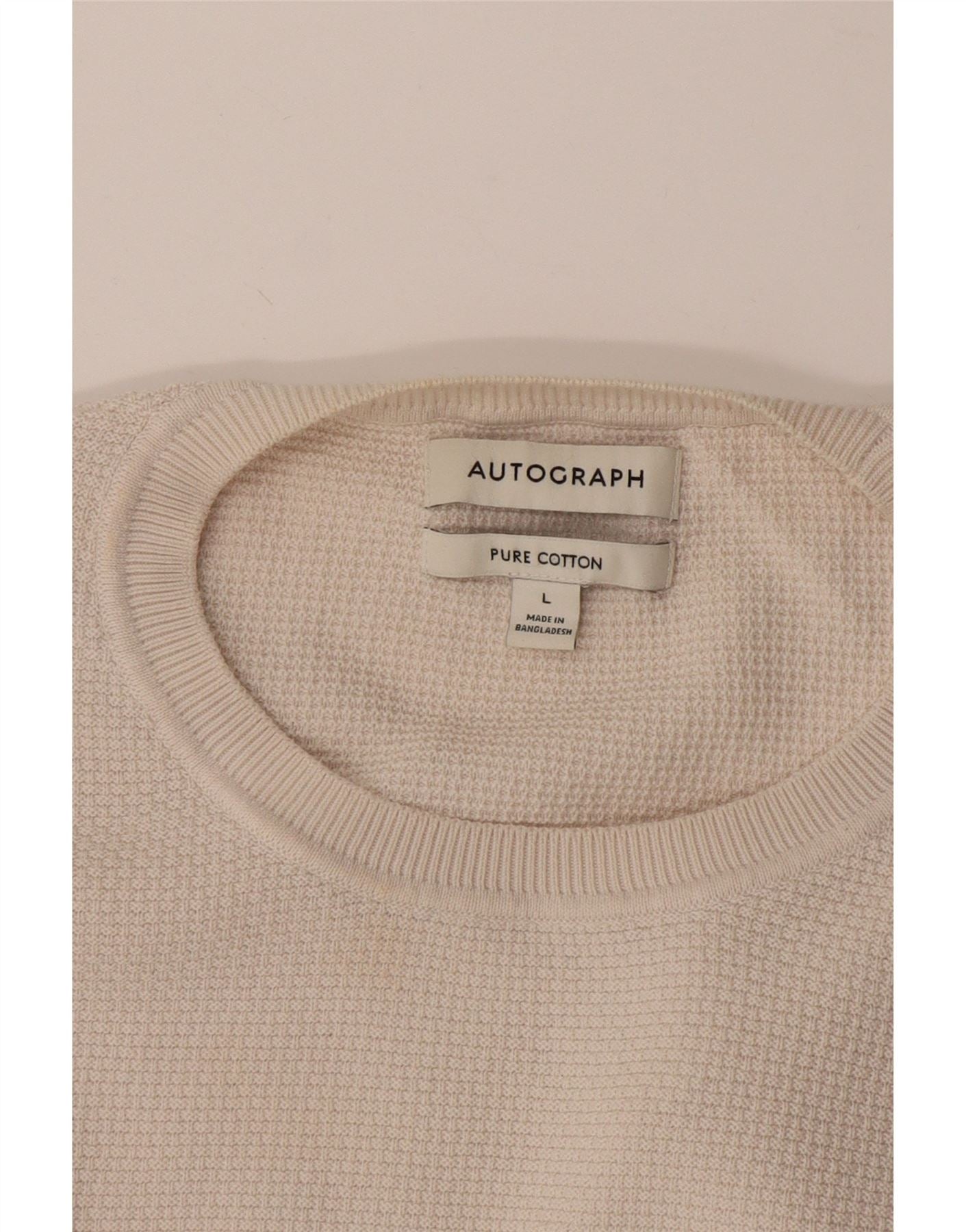 Marks & Spencer Jersey con cuello redondo y autógrafo para hombre, talla grande, algodón blanco