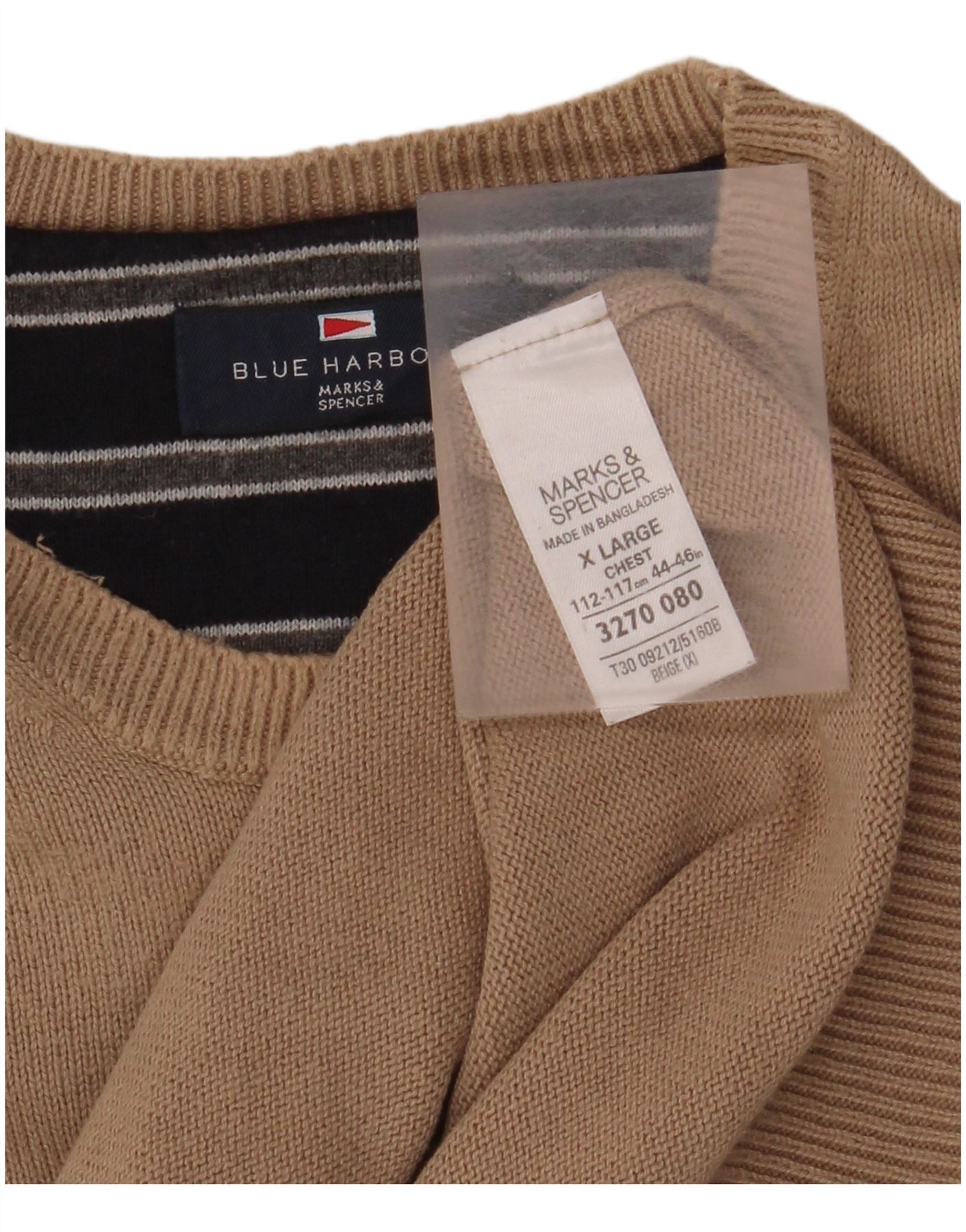 MARKS & SPENCER Jersey de cuello redondo azul Harbor para hombre XL Algodón beige