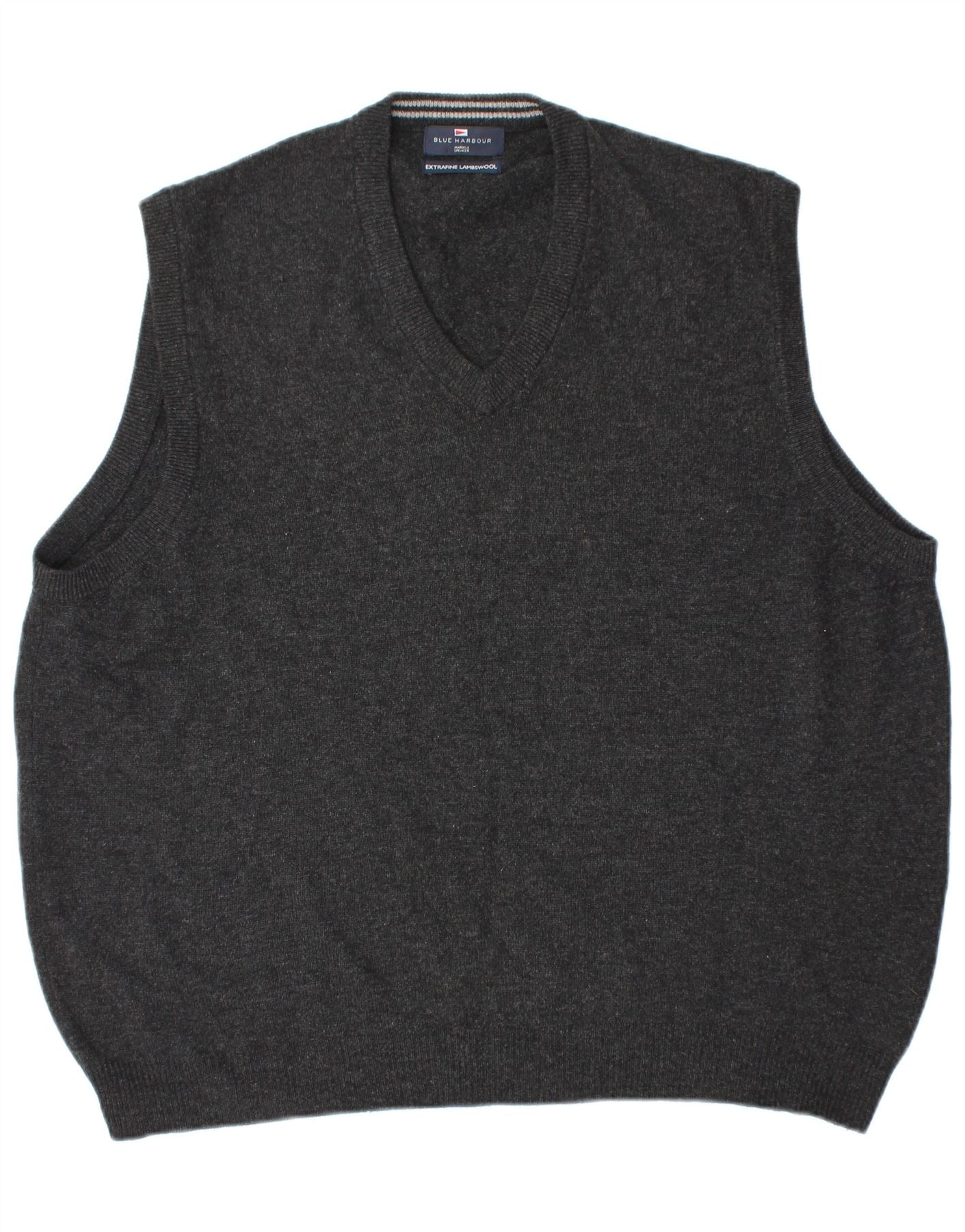 MARKS & SPENCER Camiseta sin mangas azul Harbor para hombre, talla grande, lana de cordero negra