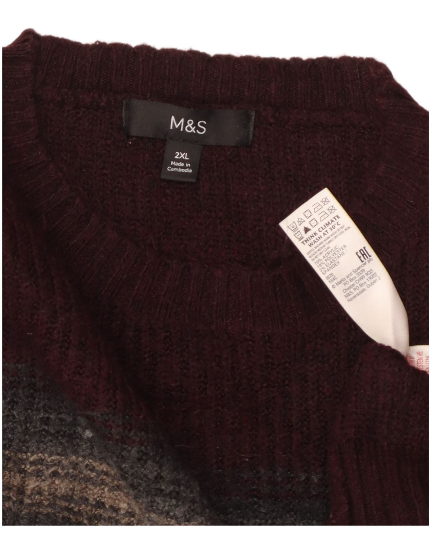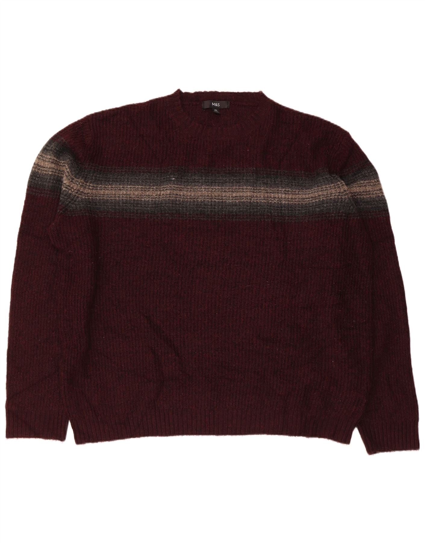 MARKS & SPENCER Suéter de cuello redondo para hombre 2XL Acrílico a rayas burdeos