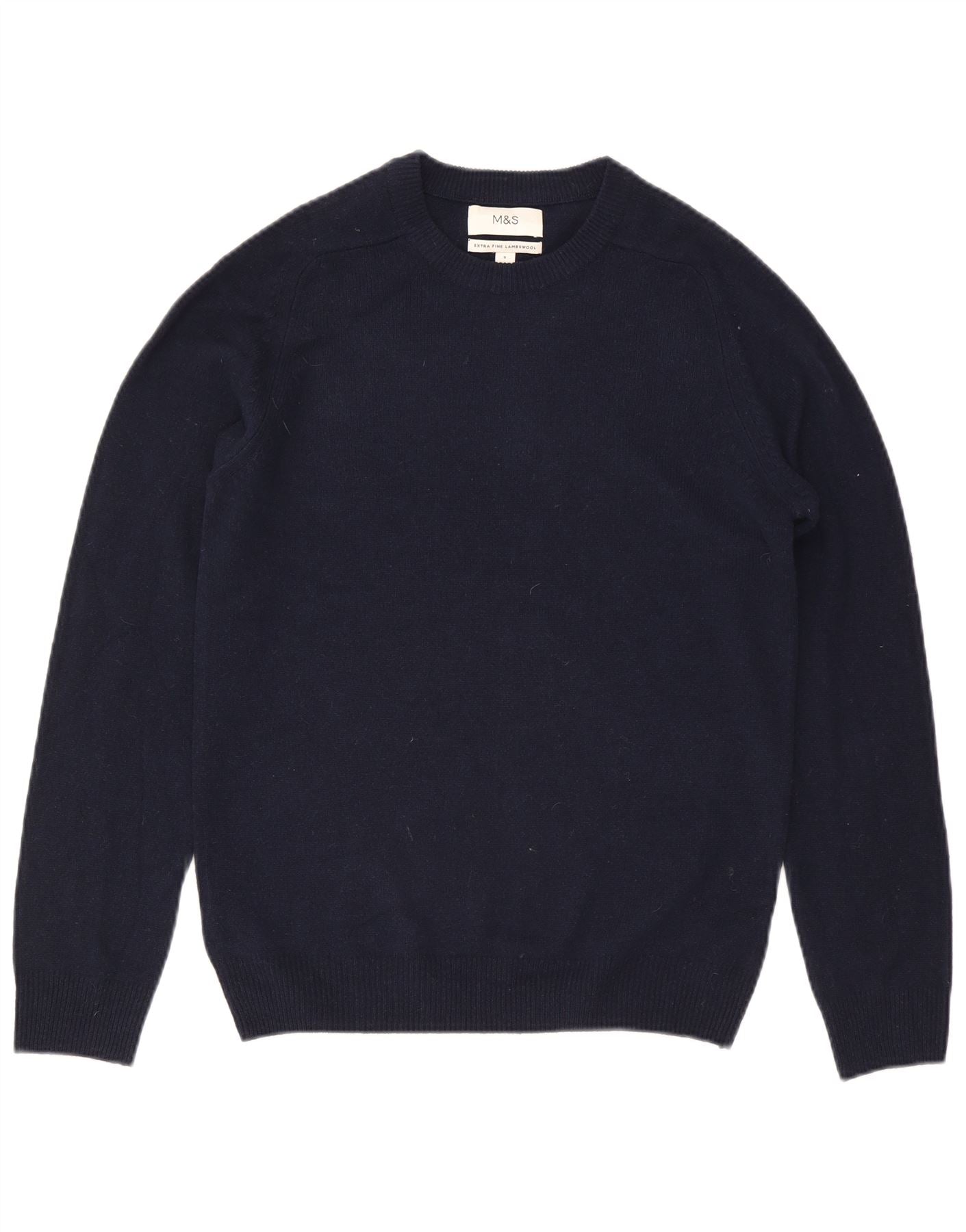 Marks & Spencer - Jersey de cuello redondo para hombre, talla pequeña, lana azul marino