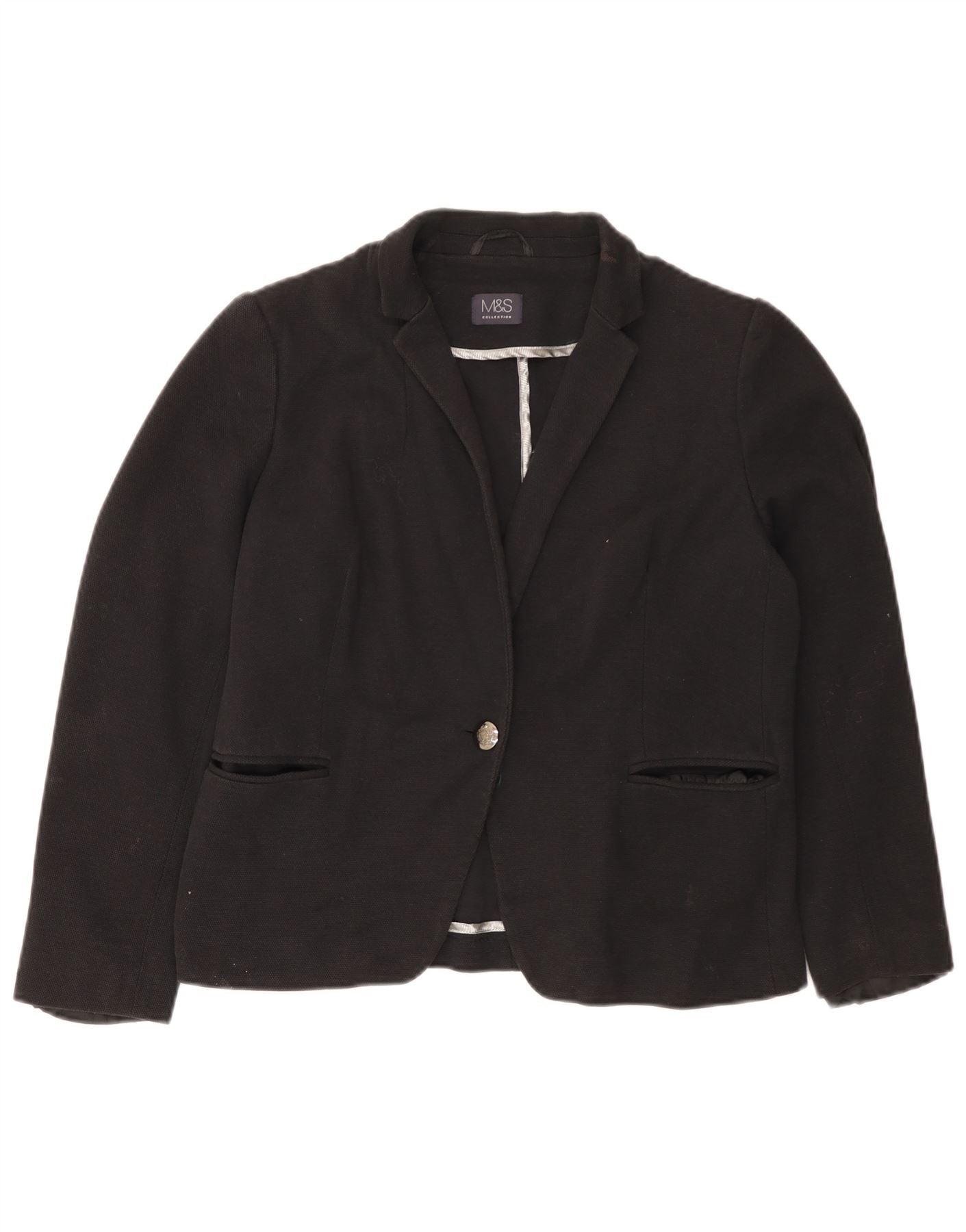 MARKS & SPENCER Chaqueta tipo blazer con 1 botón para mujer UK 46 Grande Algodón negro