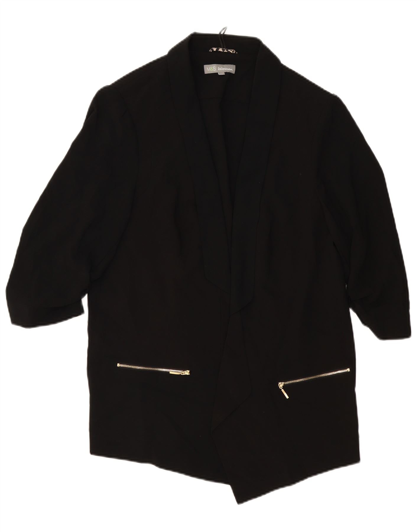 MARKS & SPENCER Chaqueta tipo blazer abierta de manga 3/4 para mujer UK 20 2XL Negro