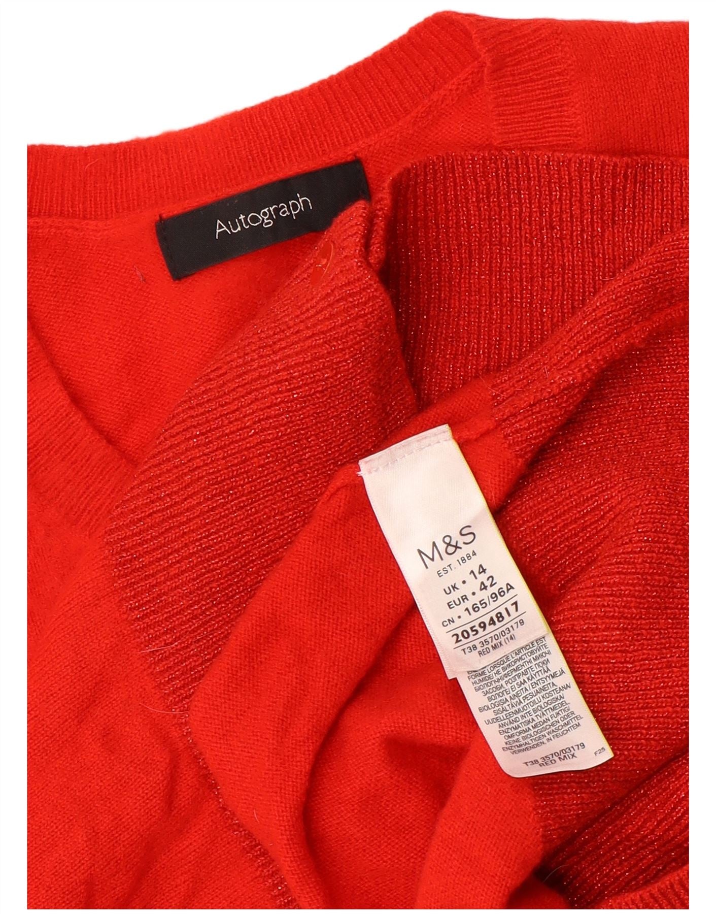Marks & Spencer Suéter tipo cárdigan autógrafo para mujer Reino Unido 44 Cachemira roja mediana