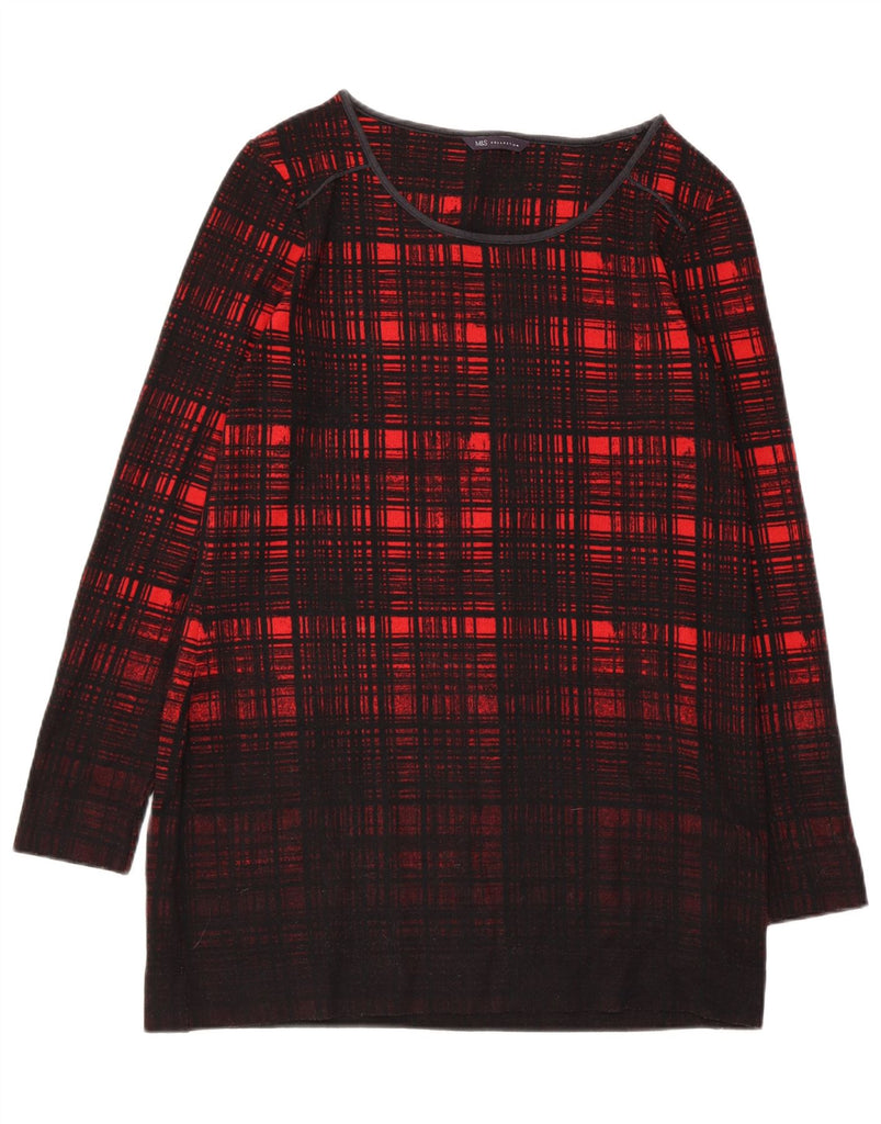 MARKS & SPENCER Womens Boat Neck Jumper Sweater UK 12 Medium Red Check
