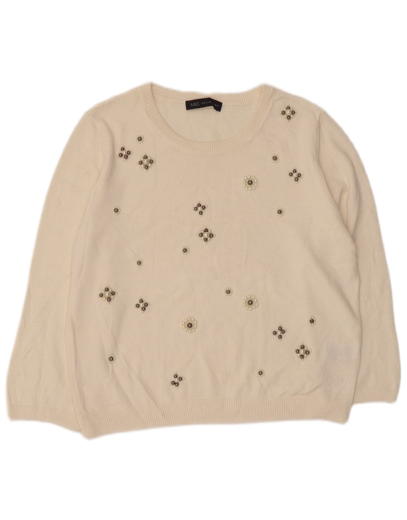 MARKS & SPENCER Suéter tipo jersey con cuello barco para mujer Reino Unido 40 Grande Blanco roto