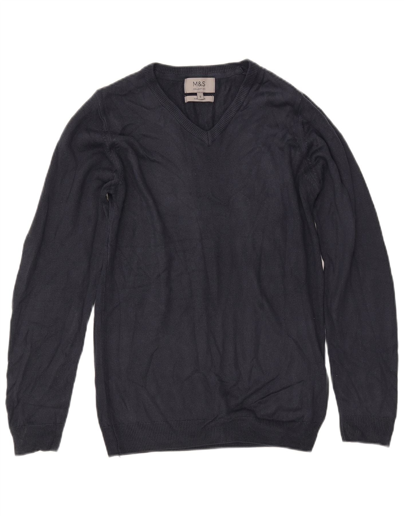 MARKS & SPENCER Suéter con cuello en V para mujer UK 10 Small Azul marino Acrílico