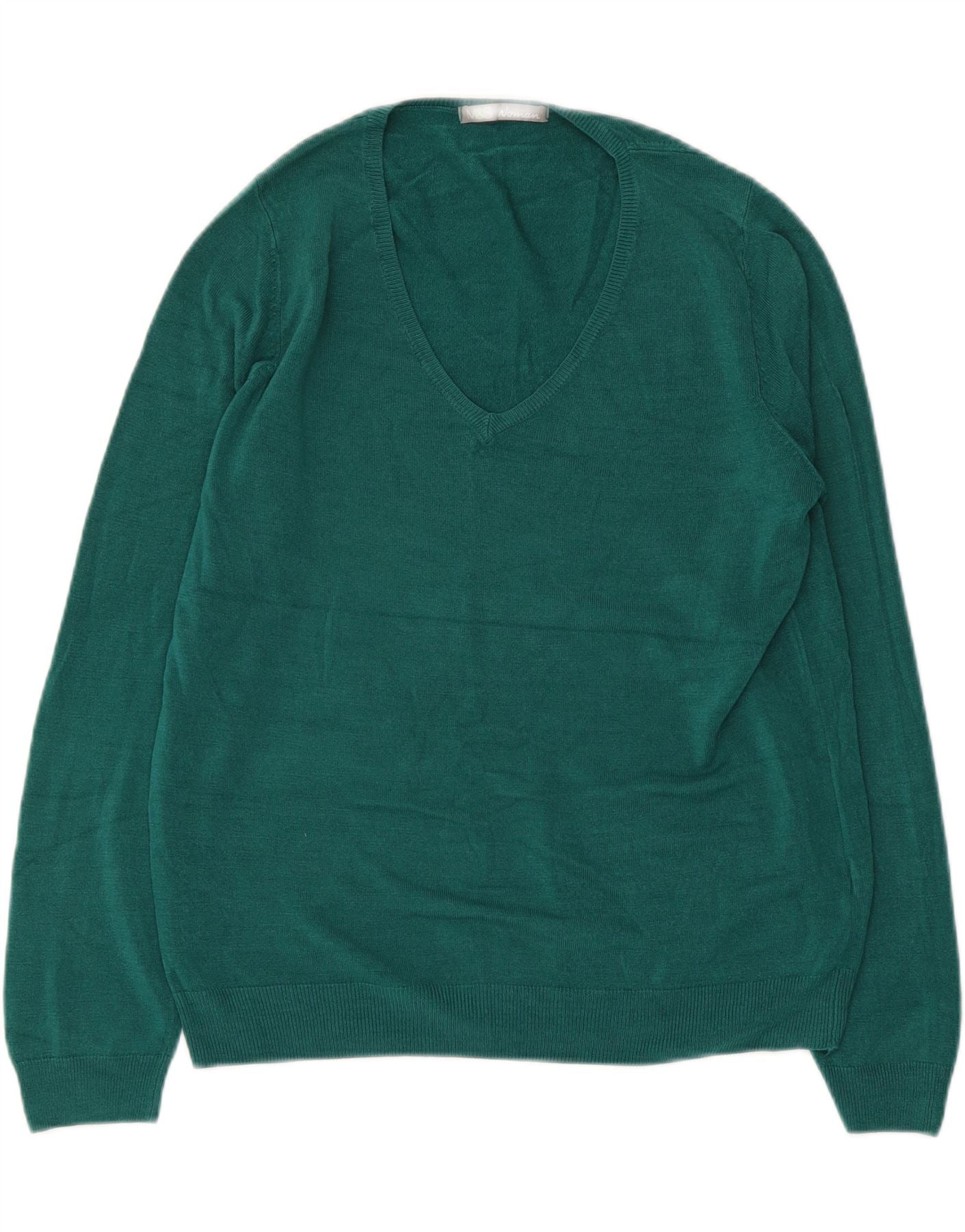 MARKS & SPENCER Womens V-Neck Jumper Sweater UK 14 Medium Green