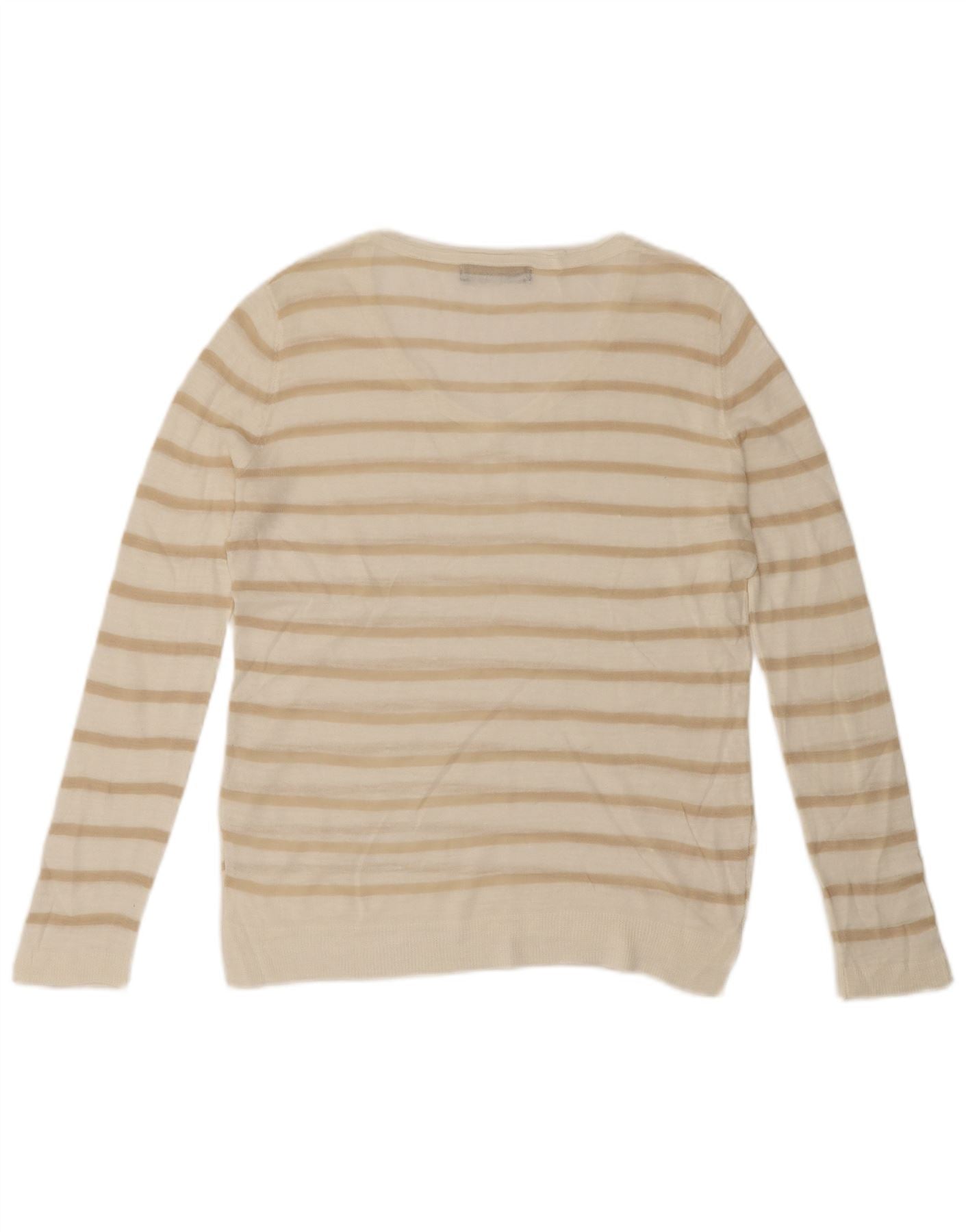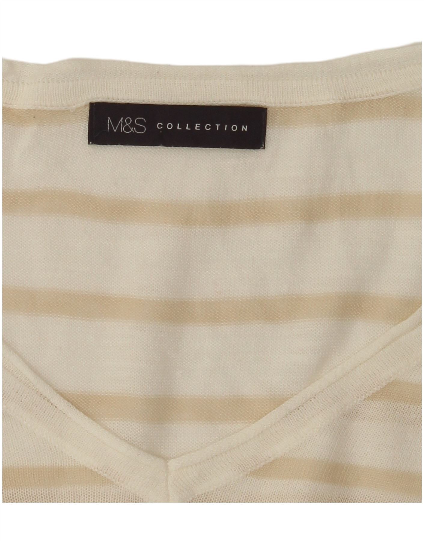 MARKS & SPENCER Suéter con cuello en V para mujer UK 46 Grande Blanco Rayas