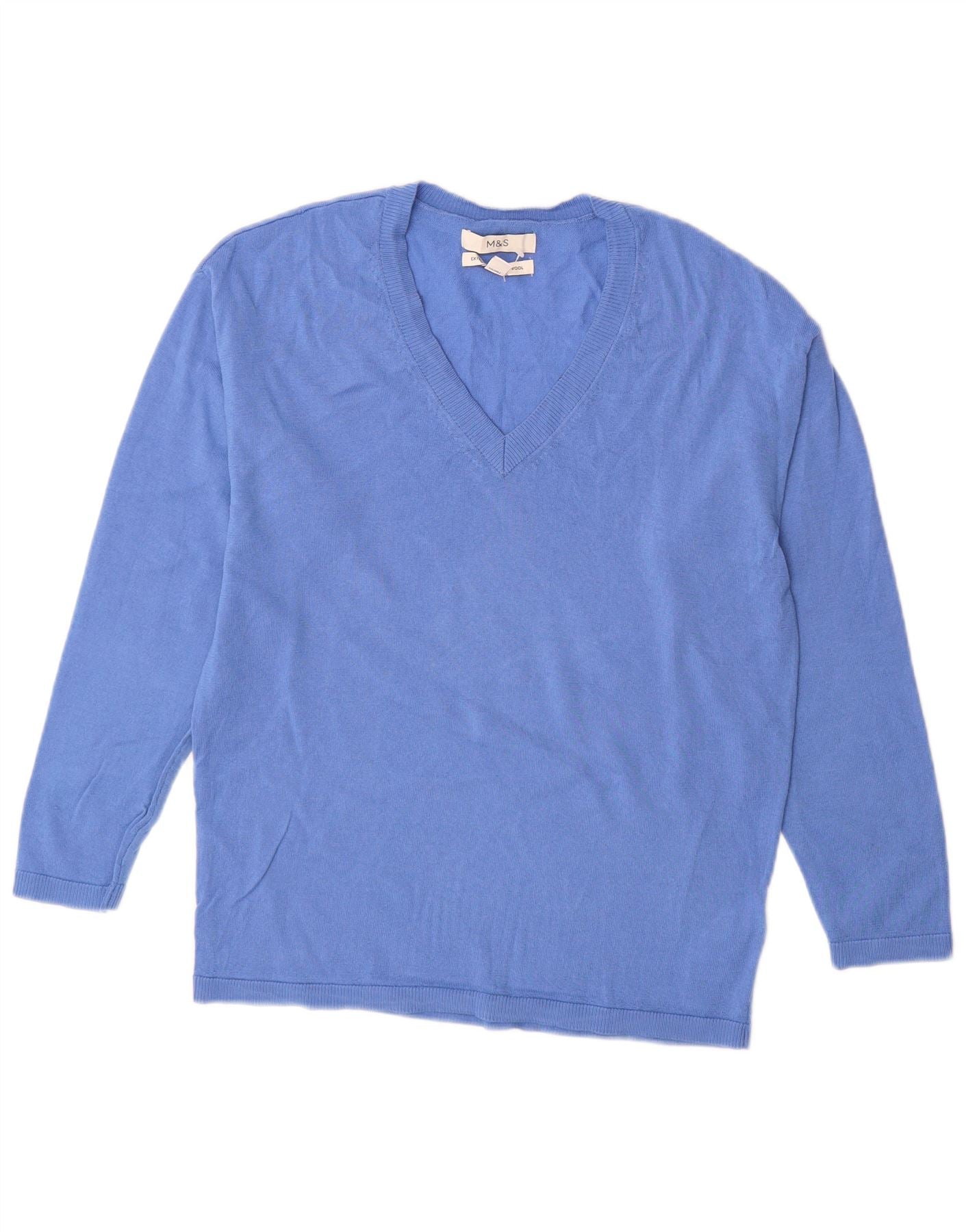 Marks & Spencer Suéter con Cuello en V para Mujer UK 6 XS Lana Merino Azul