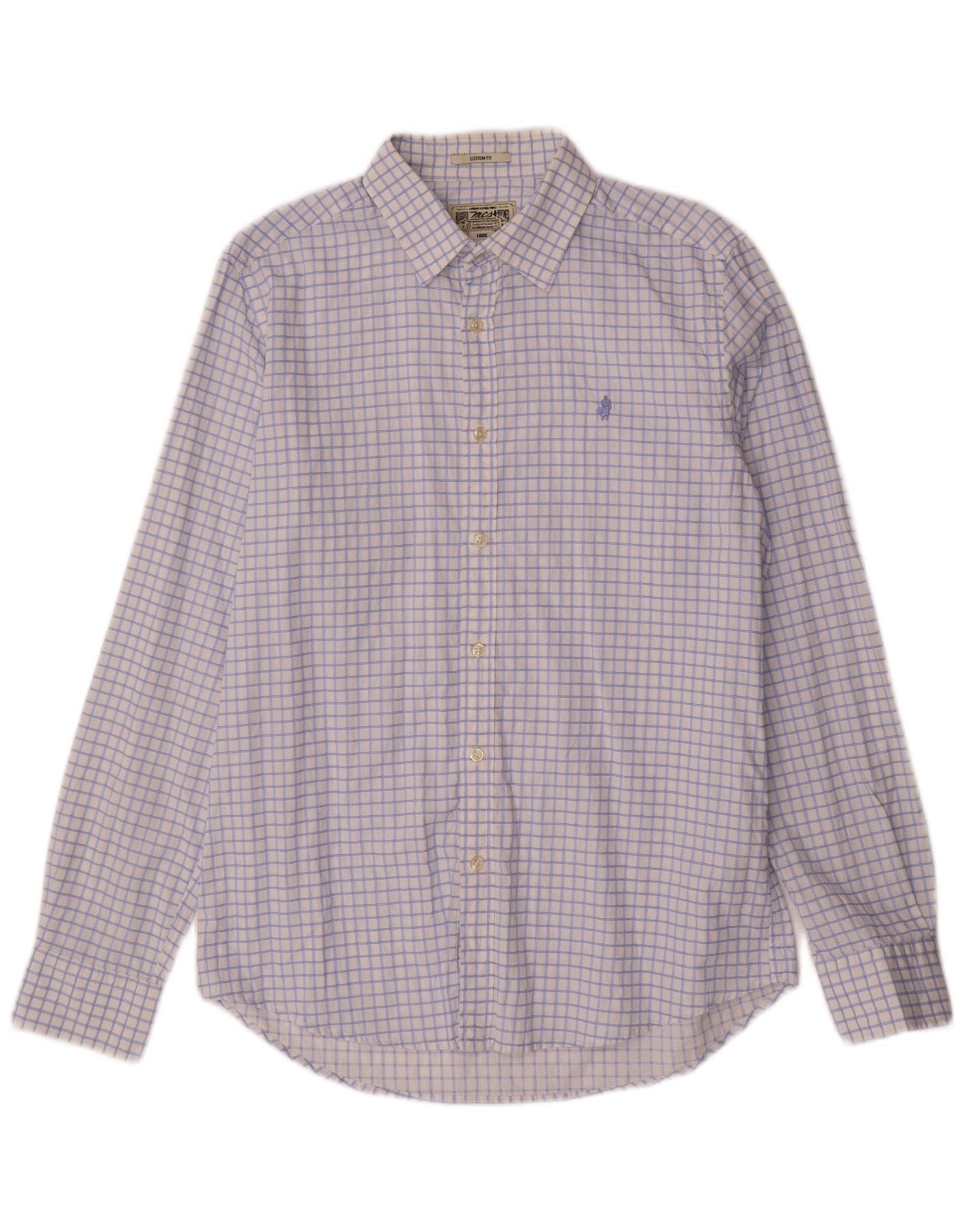Marlboro Classics Camisa personalizada para hombre Algodón a cuadros azules grandes