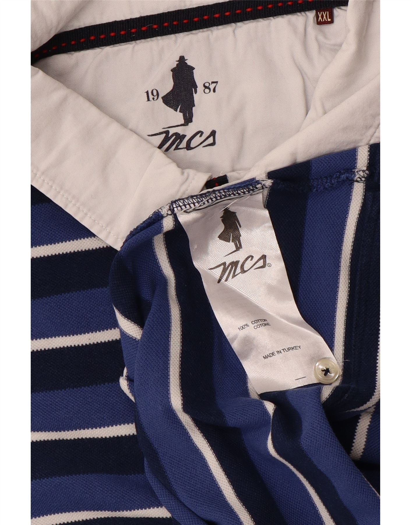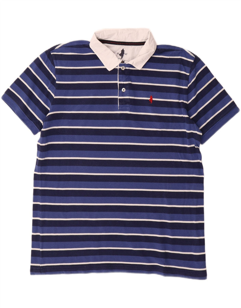 MARLBORO CLASSICS Mens Polo Shirt 2XL Blue Striped Cotton