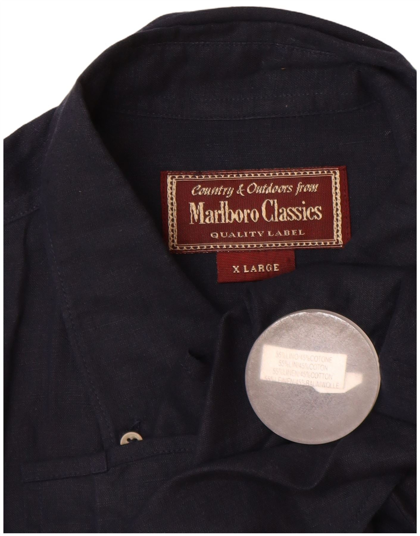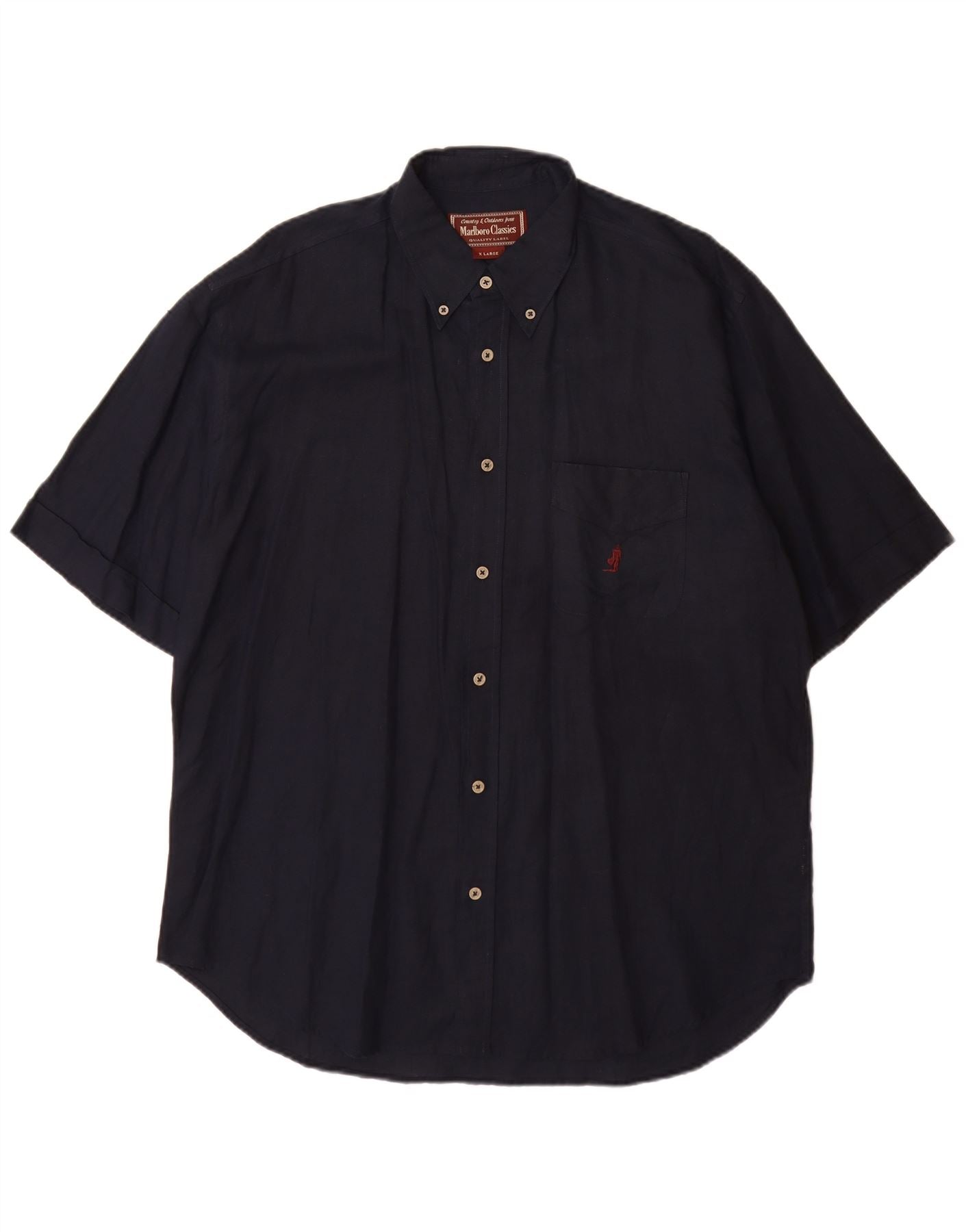 MARLBORO CLASSICS Camisa Manga Corta Hombre XL Lino Azul Marino