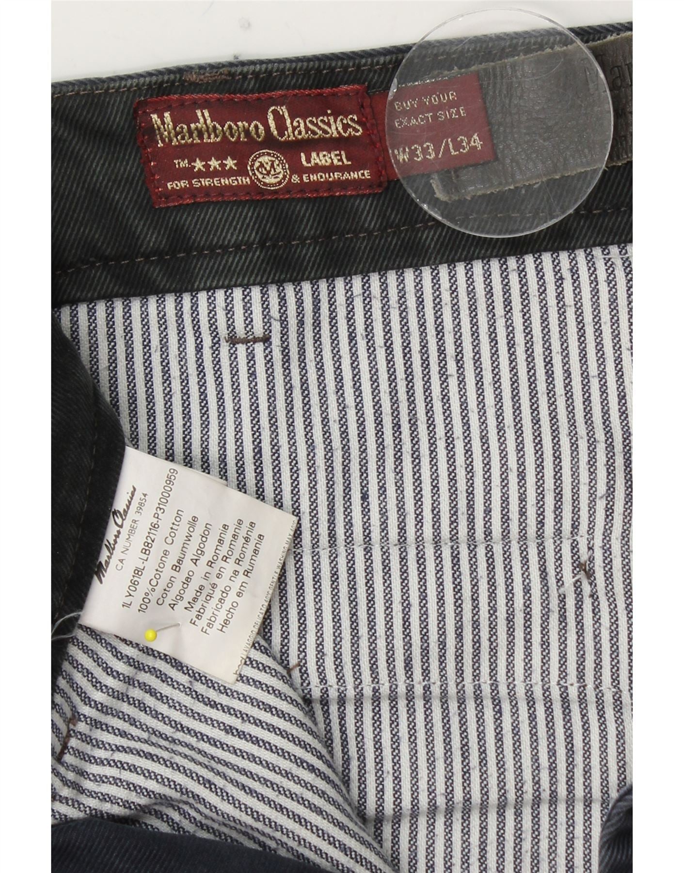 MARLBORO CLASSICS Pantalón chino recto para hombre W33 L28 Algodón azul marino