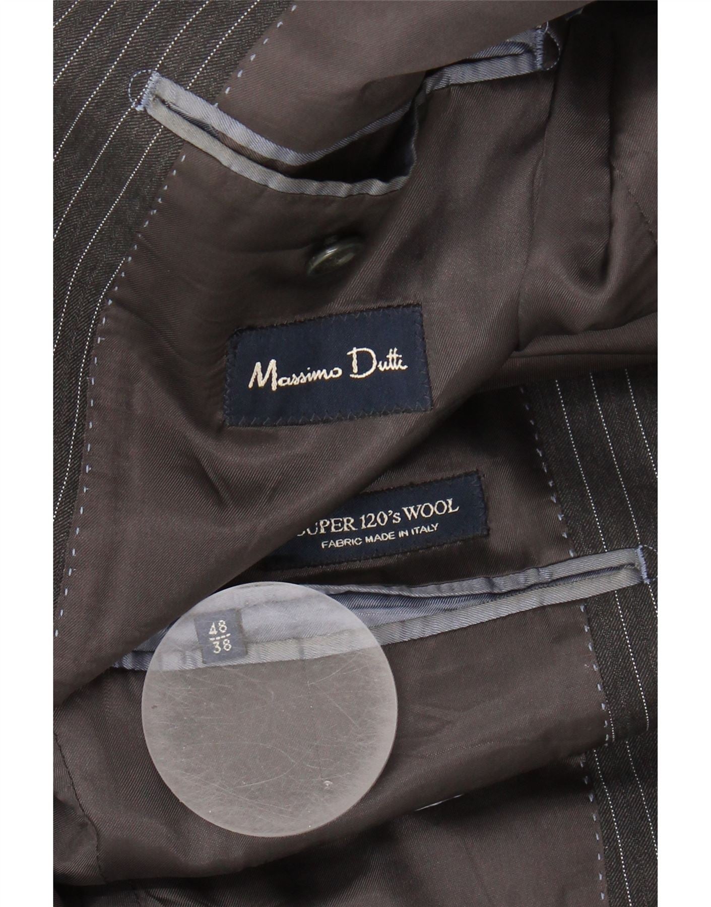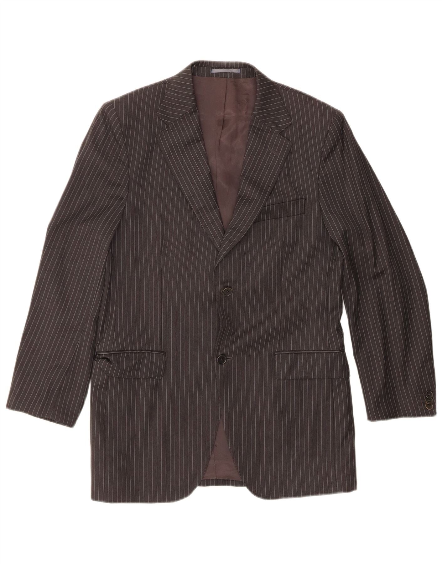MASSIMO DUTTI Mens 2 Button Blazer Jacket EU 48 Medium Grey Pinstripe Wool