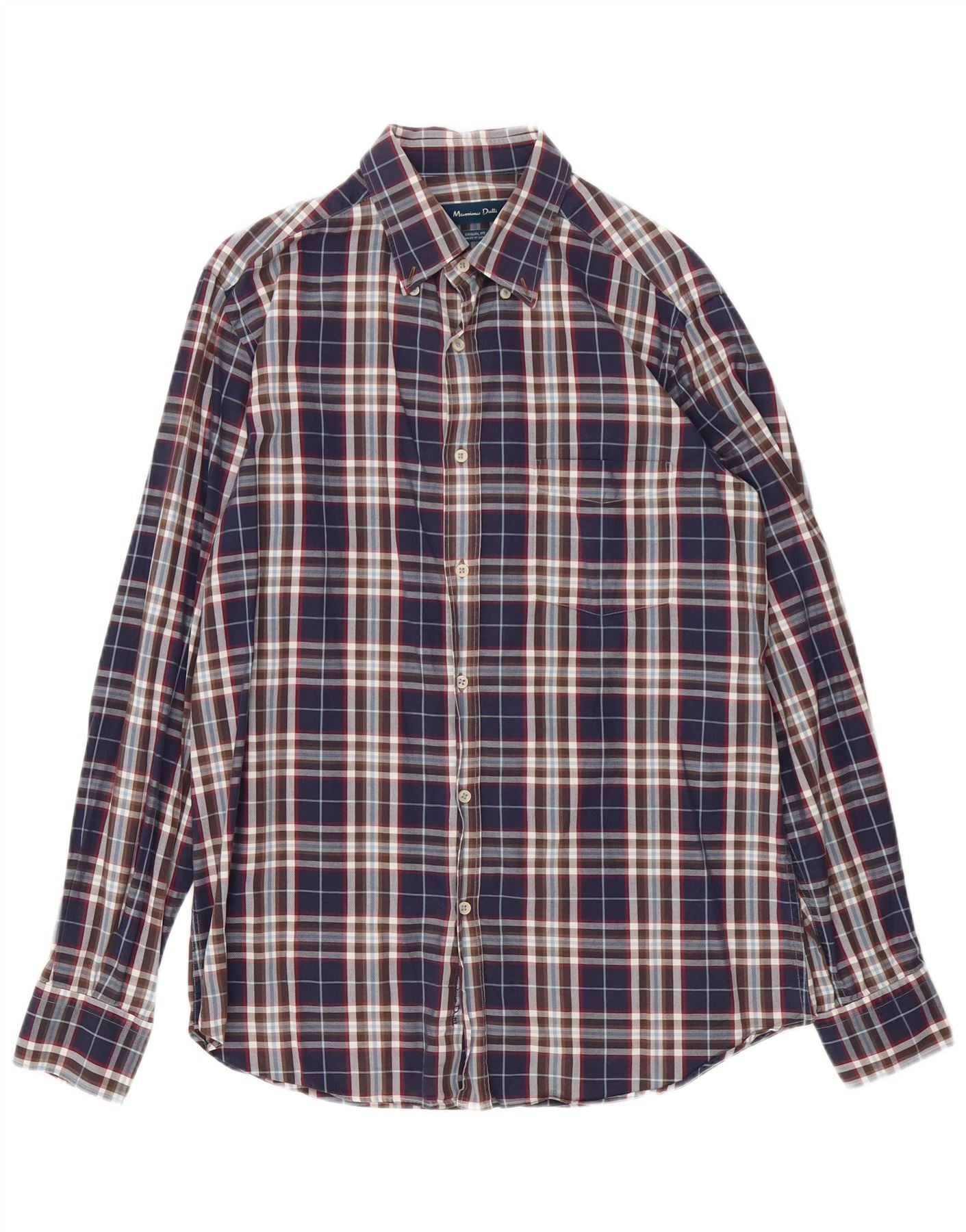 Camisa Massimo Dutti Hombre Casual Fit Cuadros Azul Marino Mediano